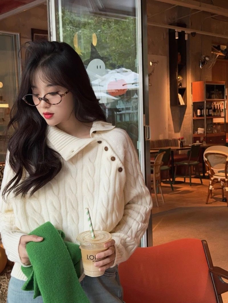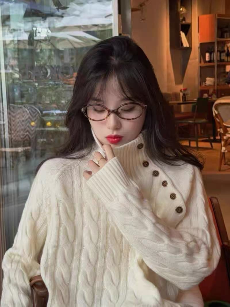 首页> 女装> 新款高领斜扣羊毛衫女宽松外穿慵懒套头加厚针织针织衫打底上衣