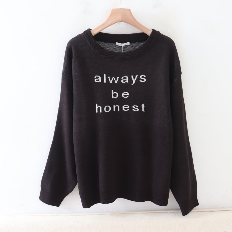 首页> 女装> B07092日单秋款客供料圆领套头宽松有弹性女纯色通勤休闲字母毛衣