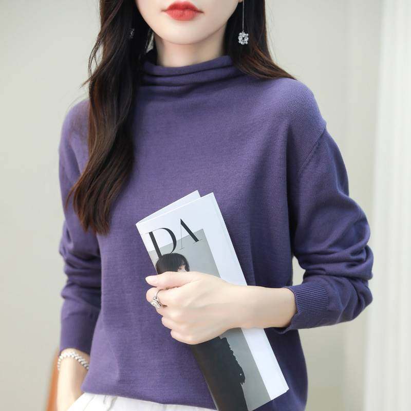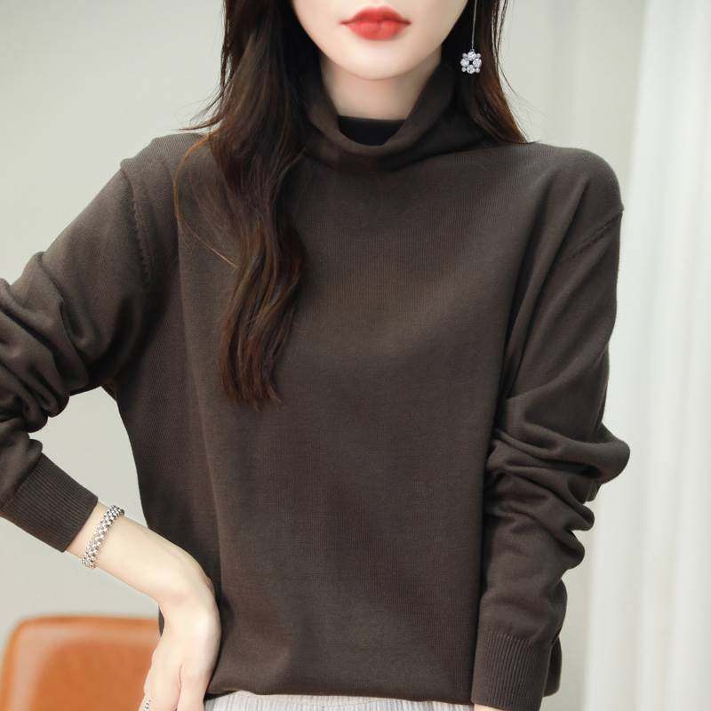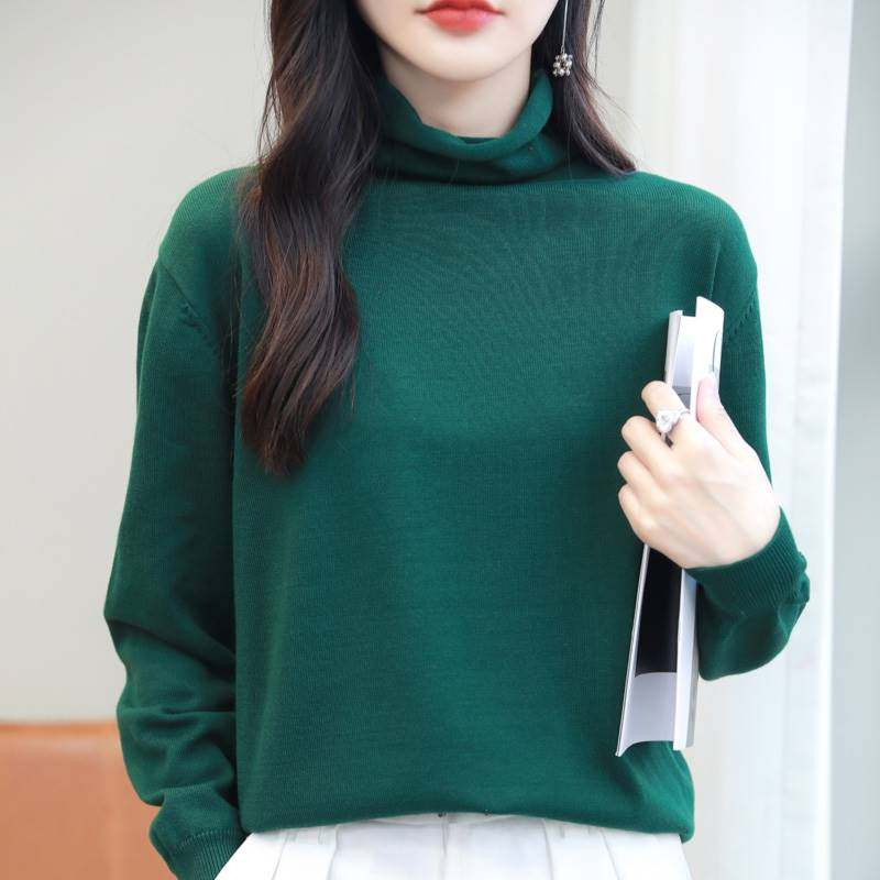 韩系高领打底衫纯棉线针织衫秋冬内搭外穿软糯不起球堆堆领毛衣女