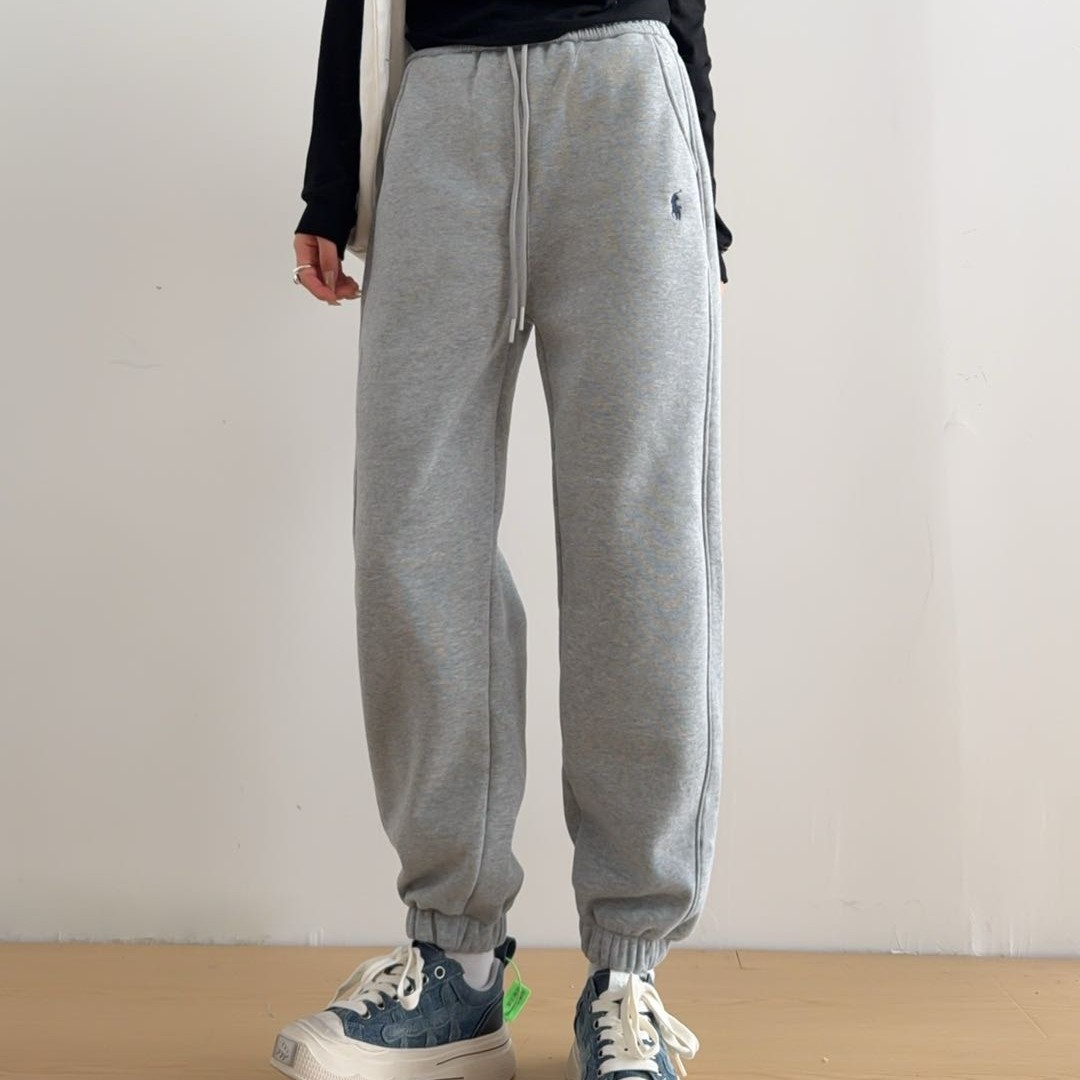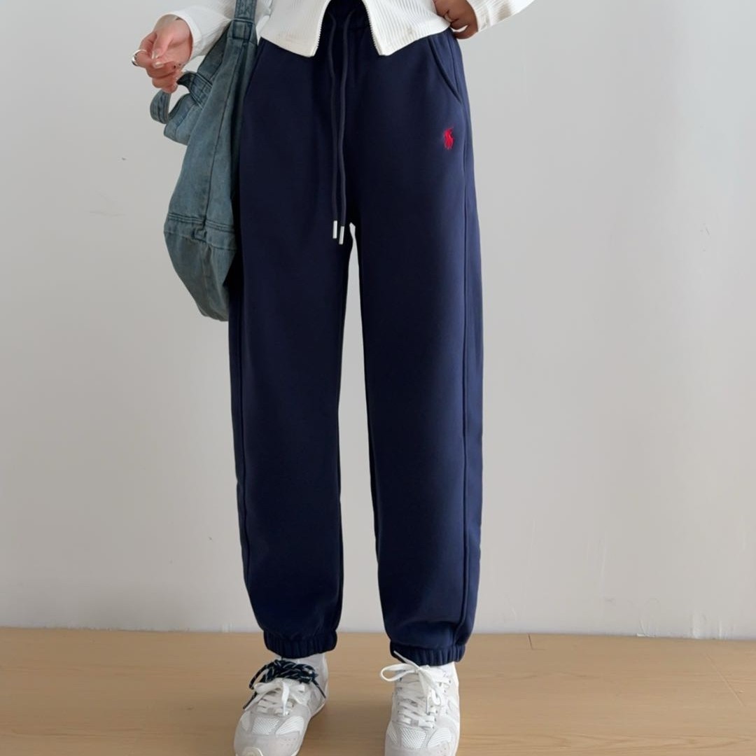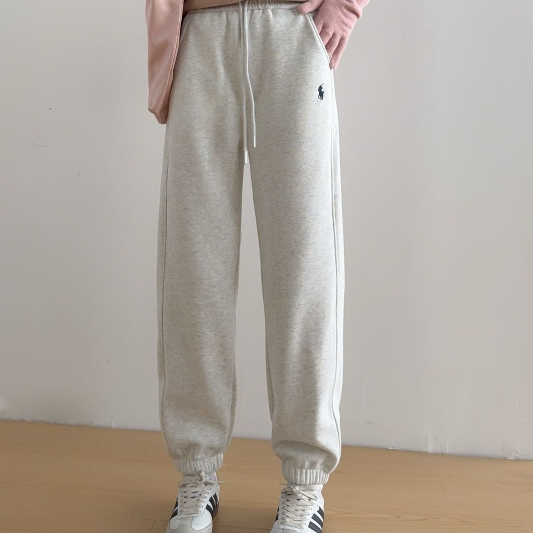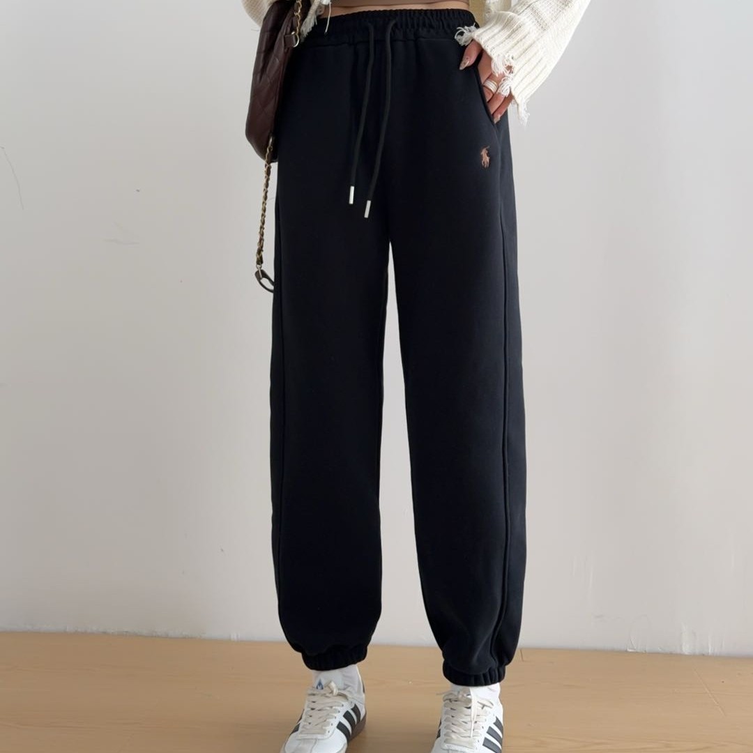 冬季加绒加厚新款休闲刺绣松紧腰遮胯显瘦大码束脚舒适保暖卫裤女