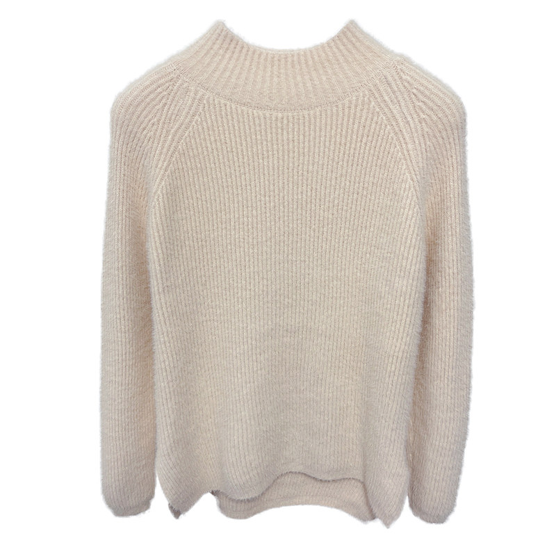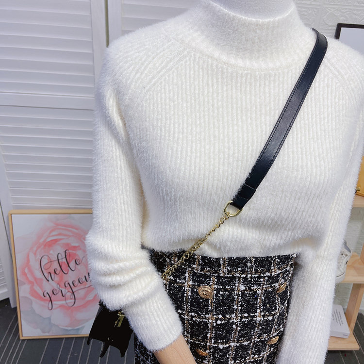 慵懒风半高领水貂绒毛衣女秋冬加厚保暖白色上衣马海毛打底针织衫