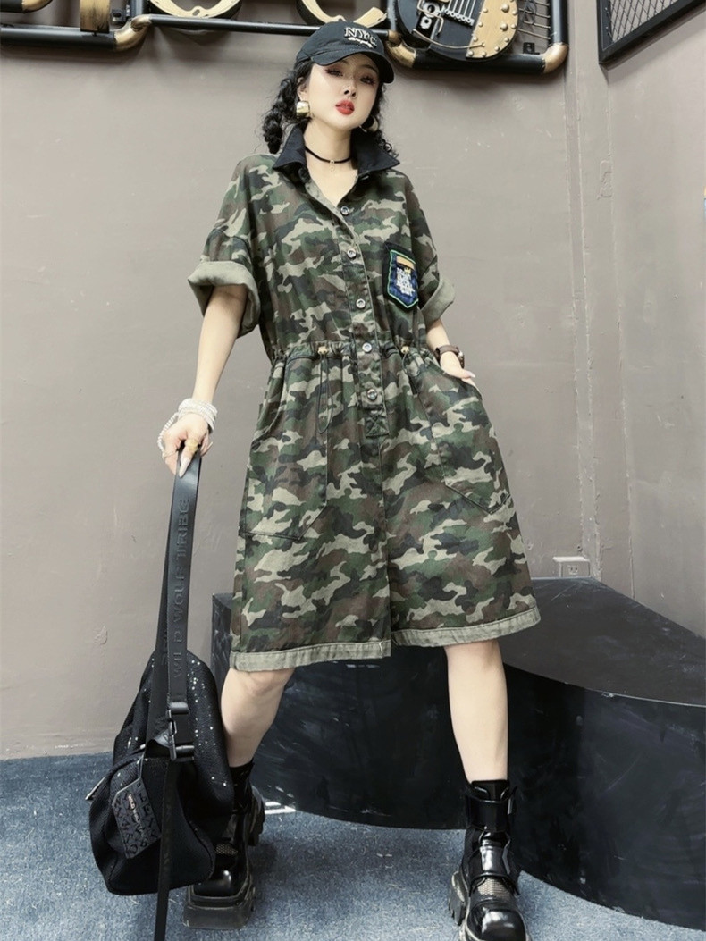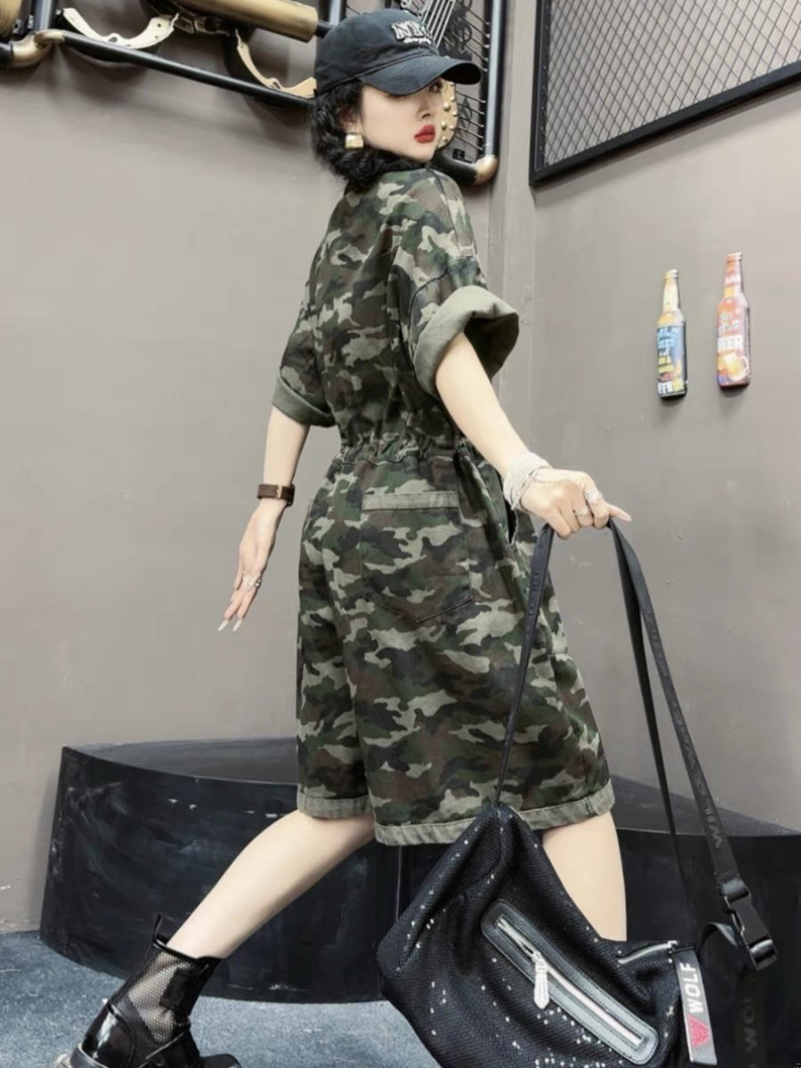 个性潮牌迷彩连体裤女2024夏新款韩版时尚工装宽松显瘦ins连体裤