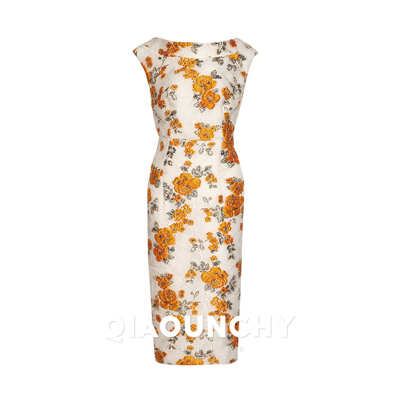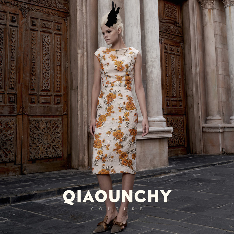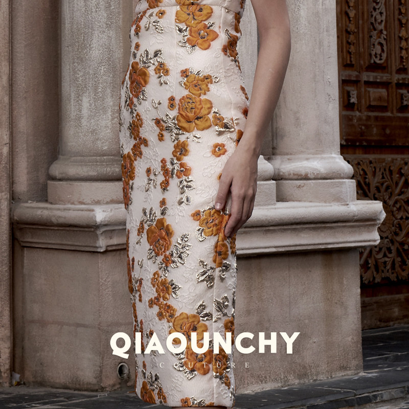意大利进口金线浮雕提花 QIAOUNCHY俏云曦|高定欧式复古领连衣裙