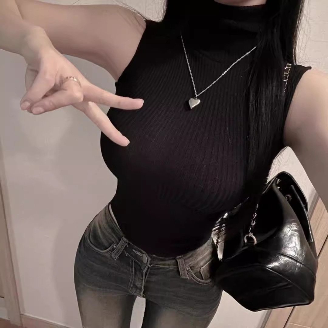 韩国东大门新款性感显身材~气质女人味高领紧身显胸大背心女上衣
