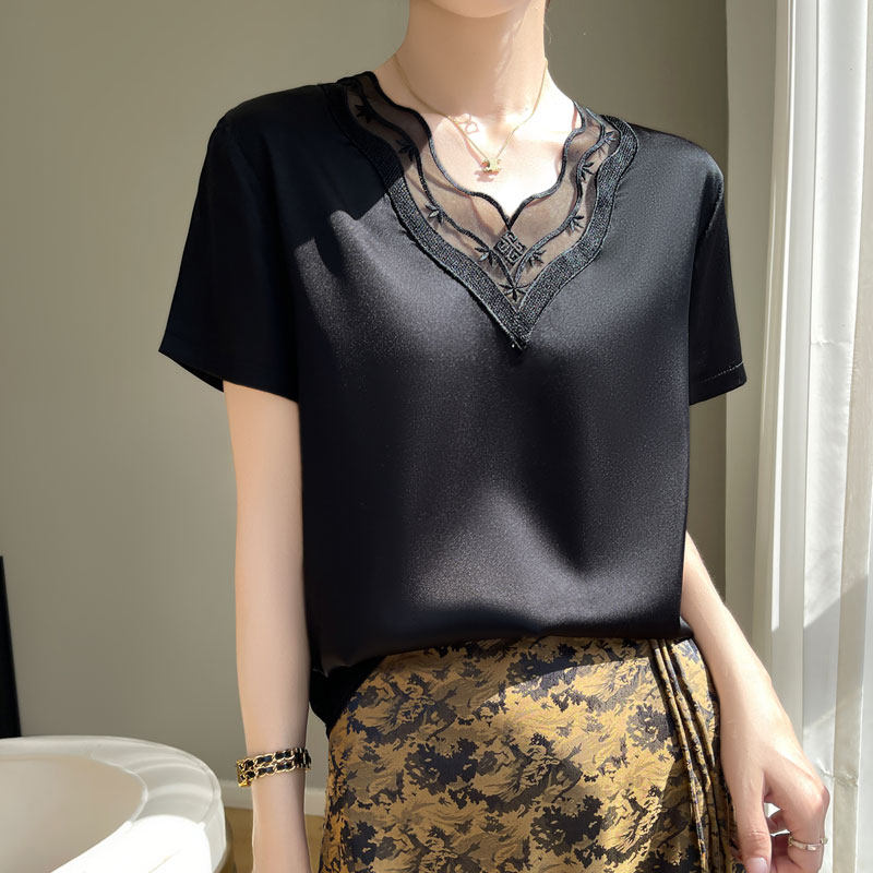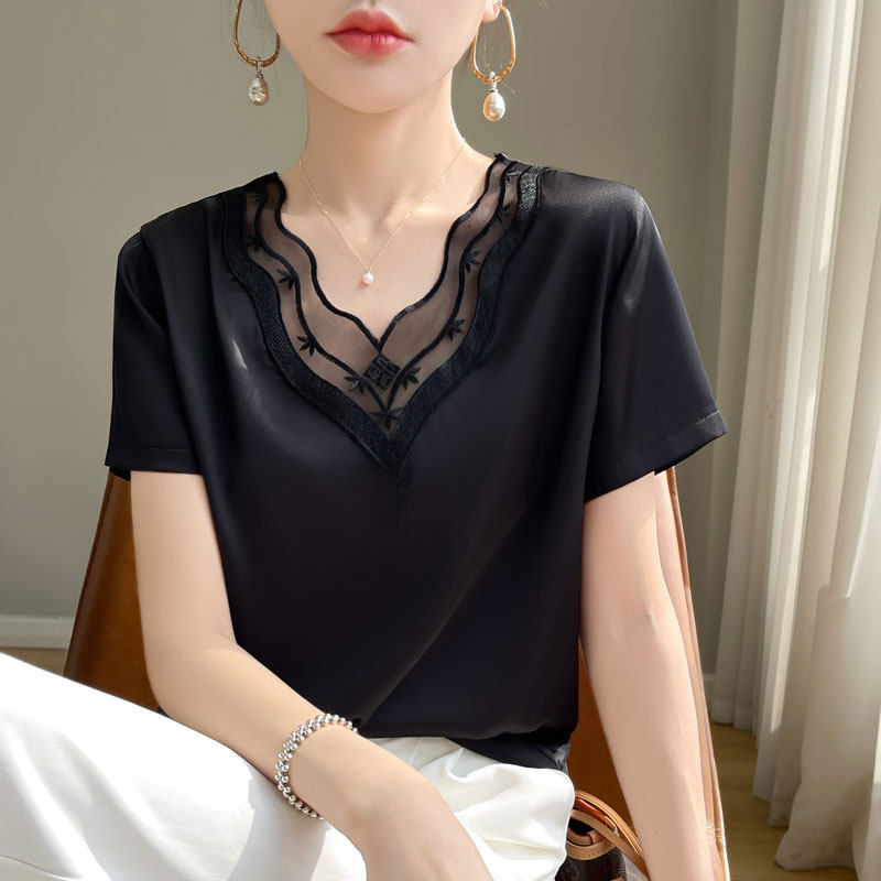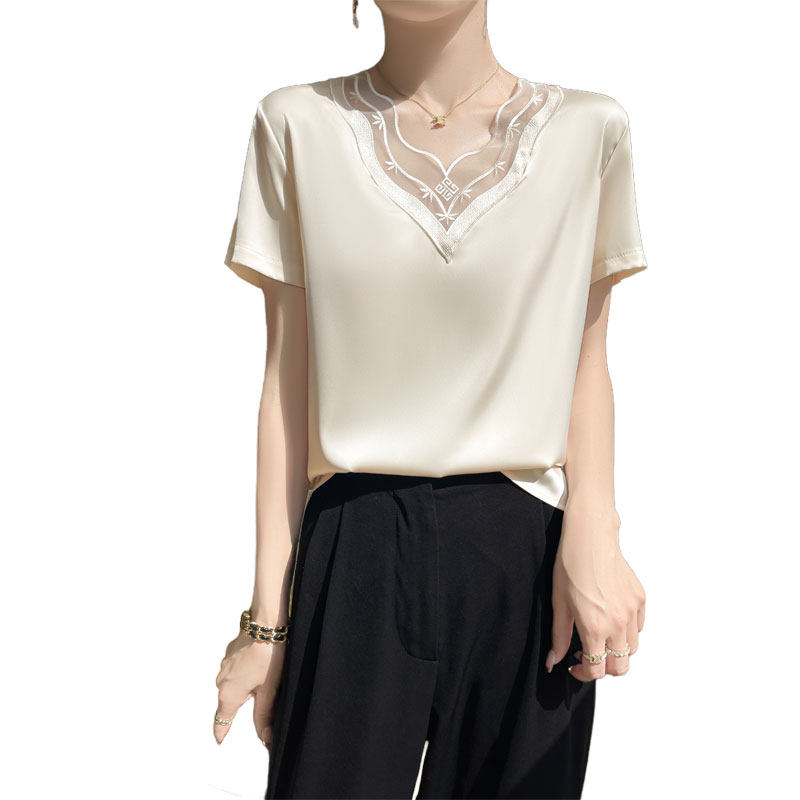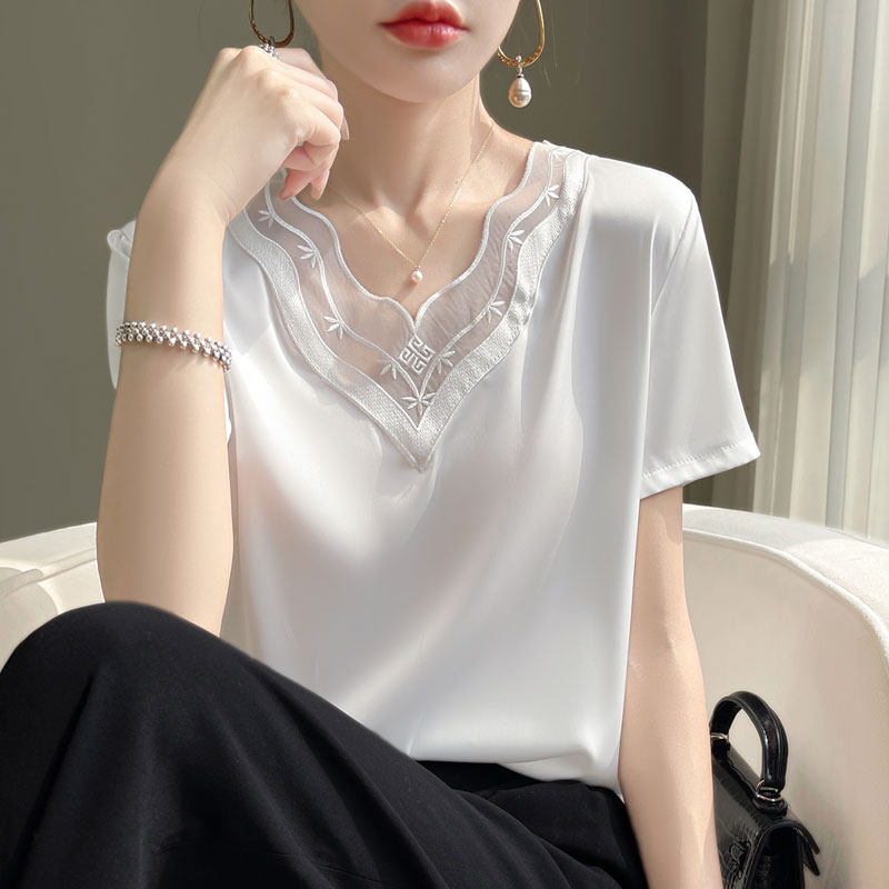 优雅气质V领短袖衬衫女夏季新款韩版宽松显瘦百搭上衣时尚女装