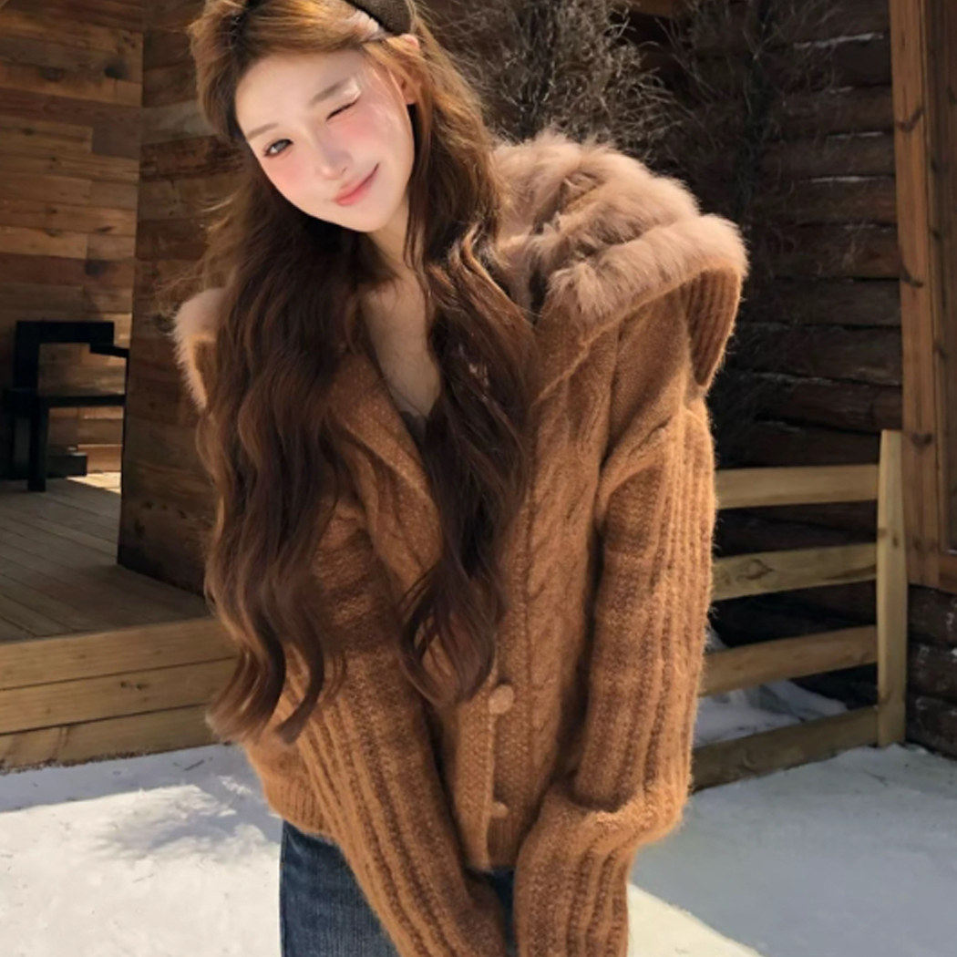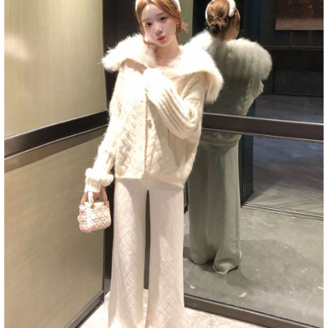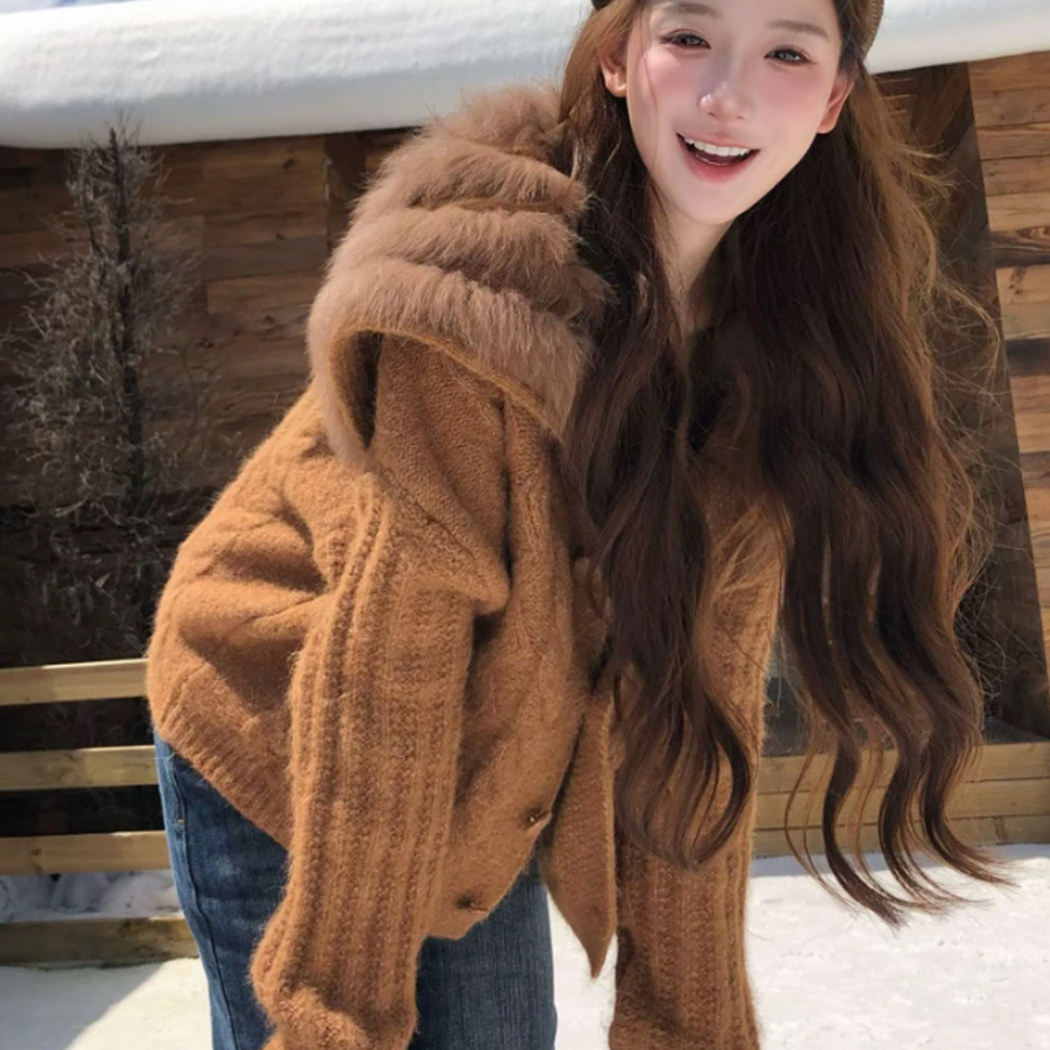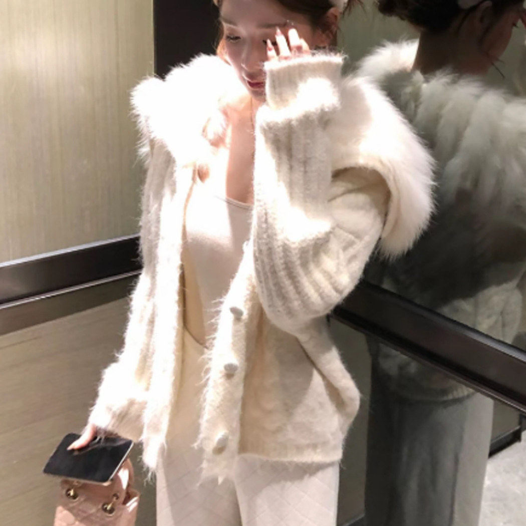美拉德穿搭大翻毛领毛衣外套女秋冬季加厚保暖慵懒风针织开衫上衣