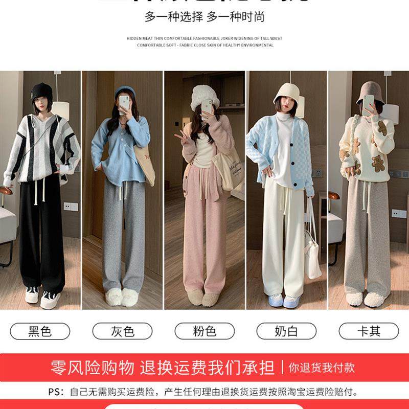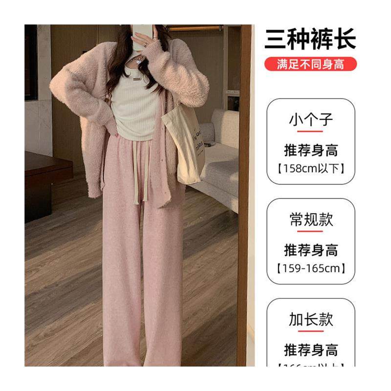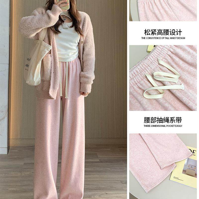 粉色加绒阔腿裤女秋冬2024新款休闲垂感加厚小个子羊绒窄版直筒裤