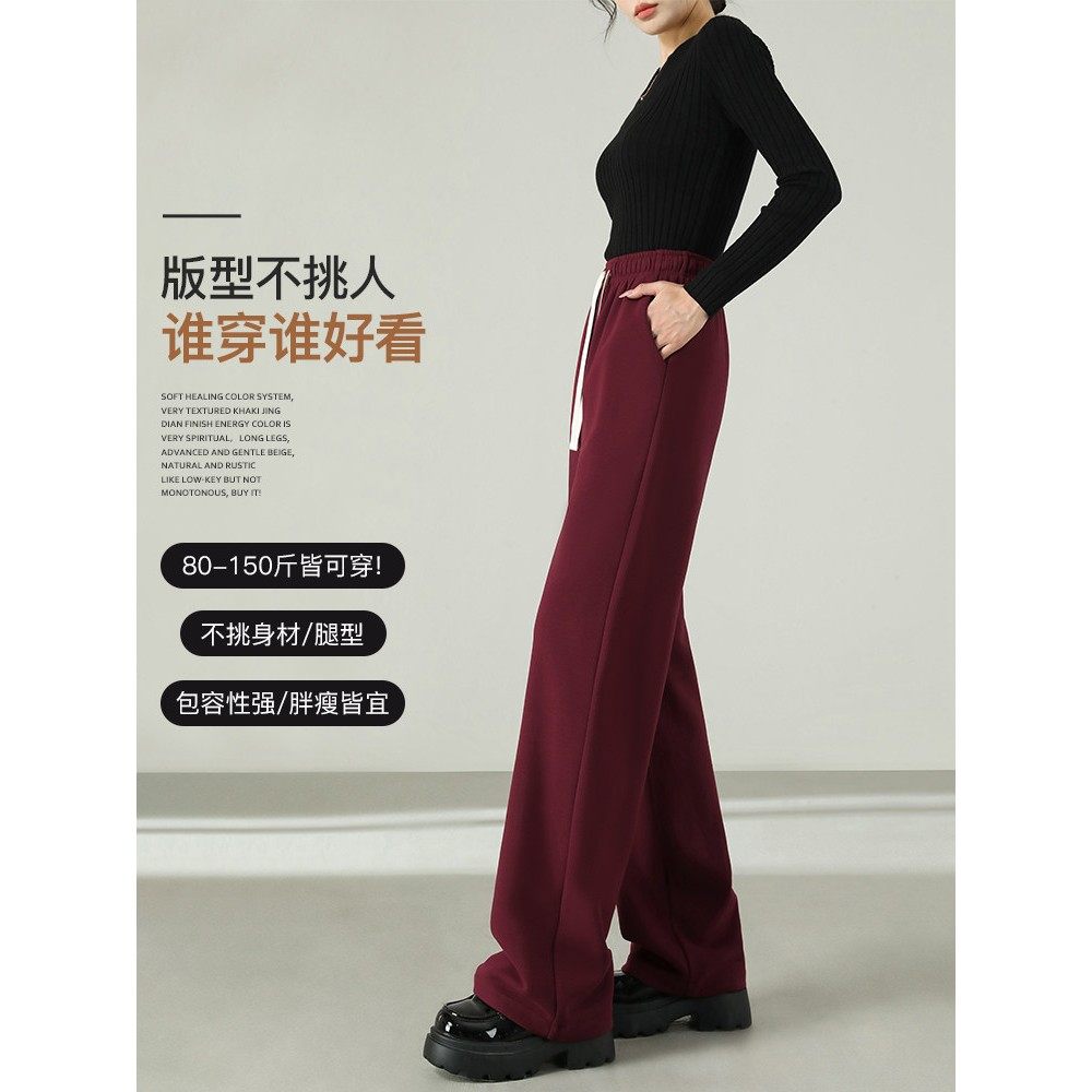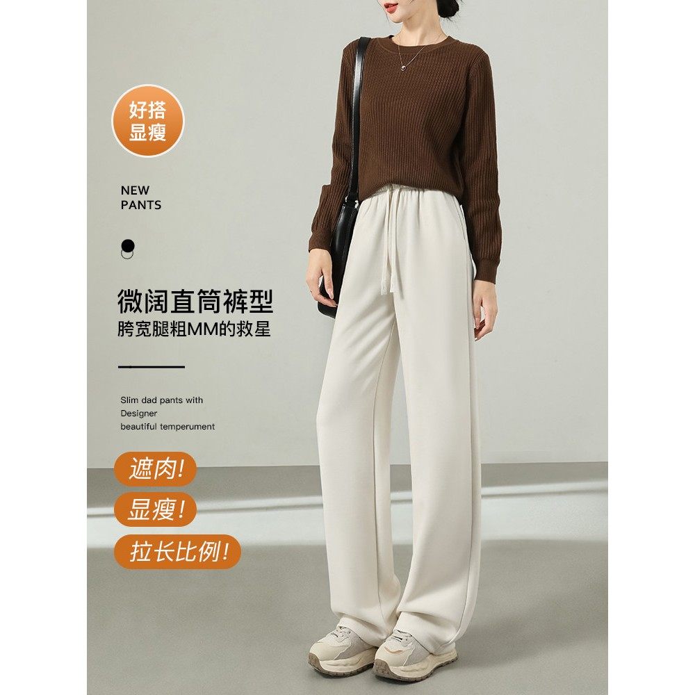 白色糯米裤女秋冬2025新款冬季羊毛裤子窄版直筒裤休闲运动阔腿裤