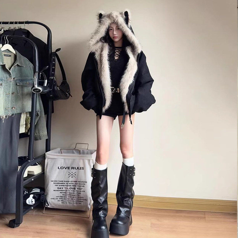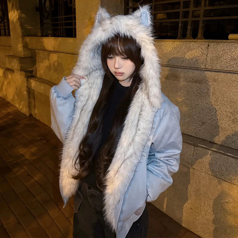 座山雕棉服女款2025新款冬季加厚棉衣美式猫耳巨好看短款棉袄外套