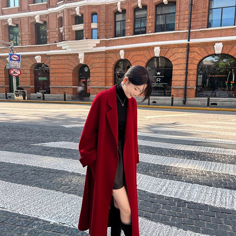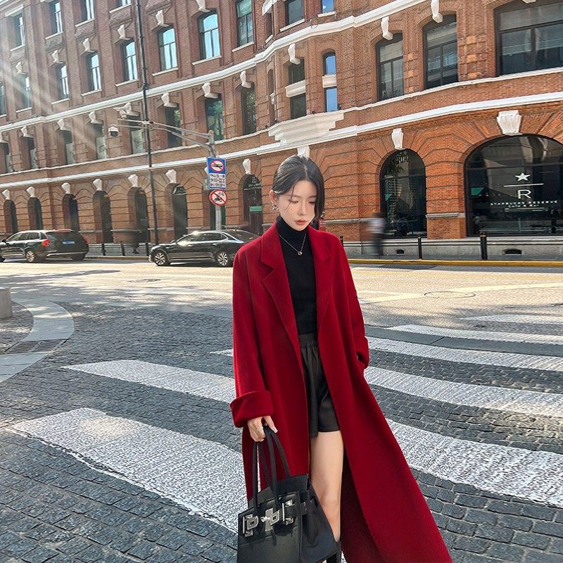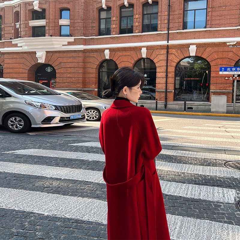 红色双面羊绒大衣女2024冬季新款韩版高端气质结婚毛呢外套中长版