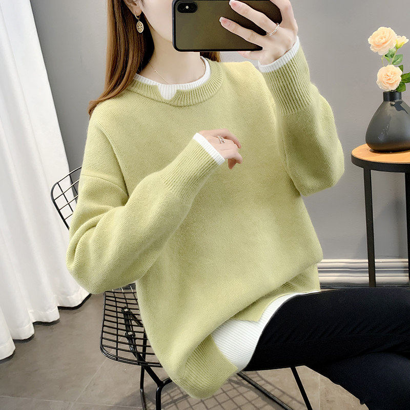 中长版毛衣女秋冬季外穿2024新款宽松慵懒风假两件针织衫加绒加厚