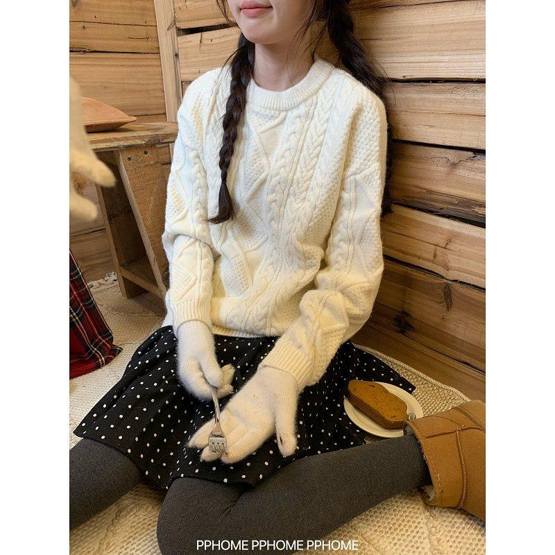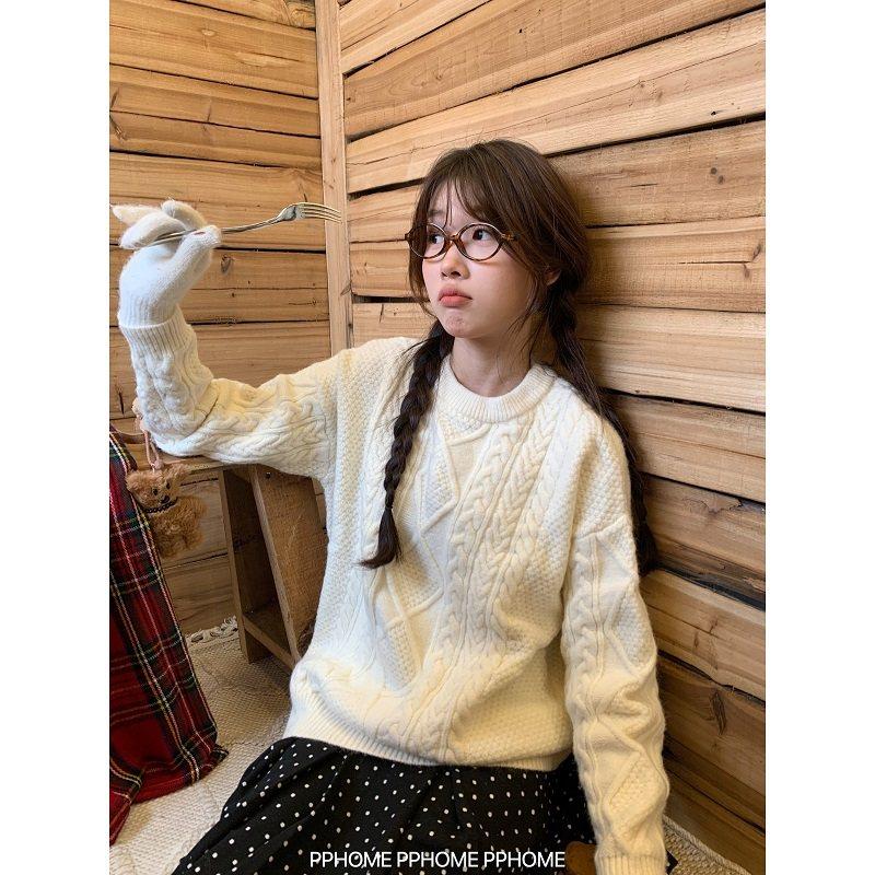 PPHOME自制~奶油米麻花毛衣 冬季经典百搭不过时圆领宽松麻花毛衣