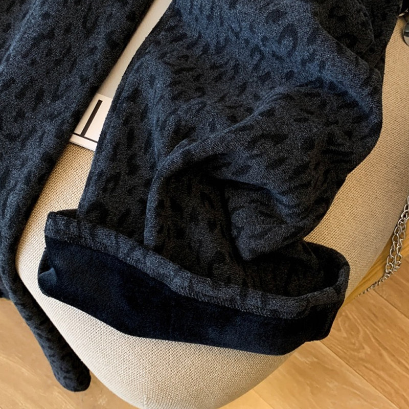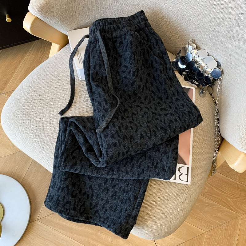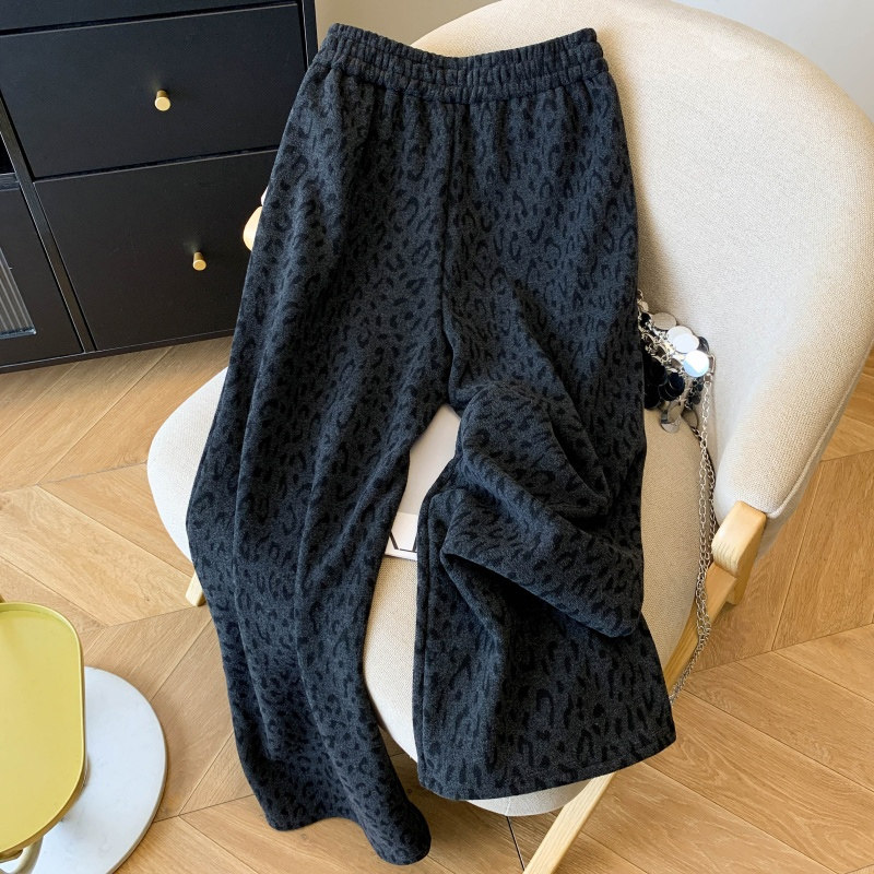 首页> 女装> 小个子150加厚毛呢阔腿裤女秋冬加绒豹纹休闲裤复古百搭直筒长裤