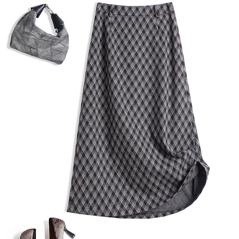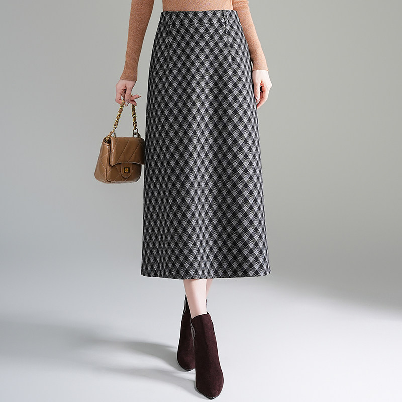 复古格子裙秋冬毛呢半身裙女2025新款高腰显瘦包臀裙气质中长裙子