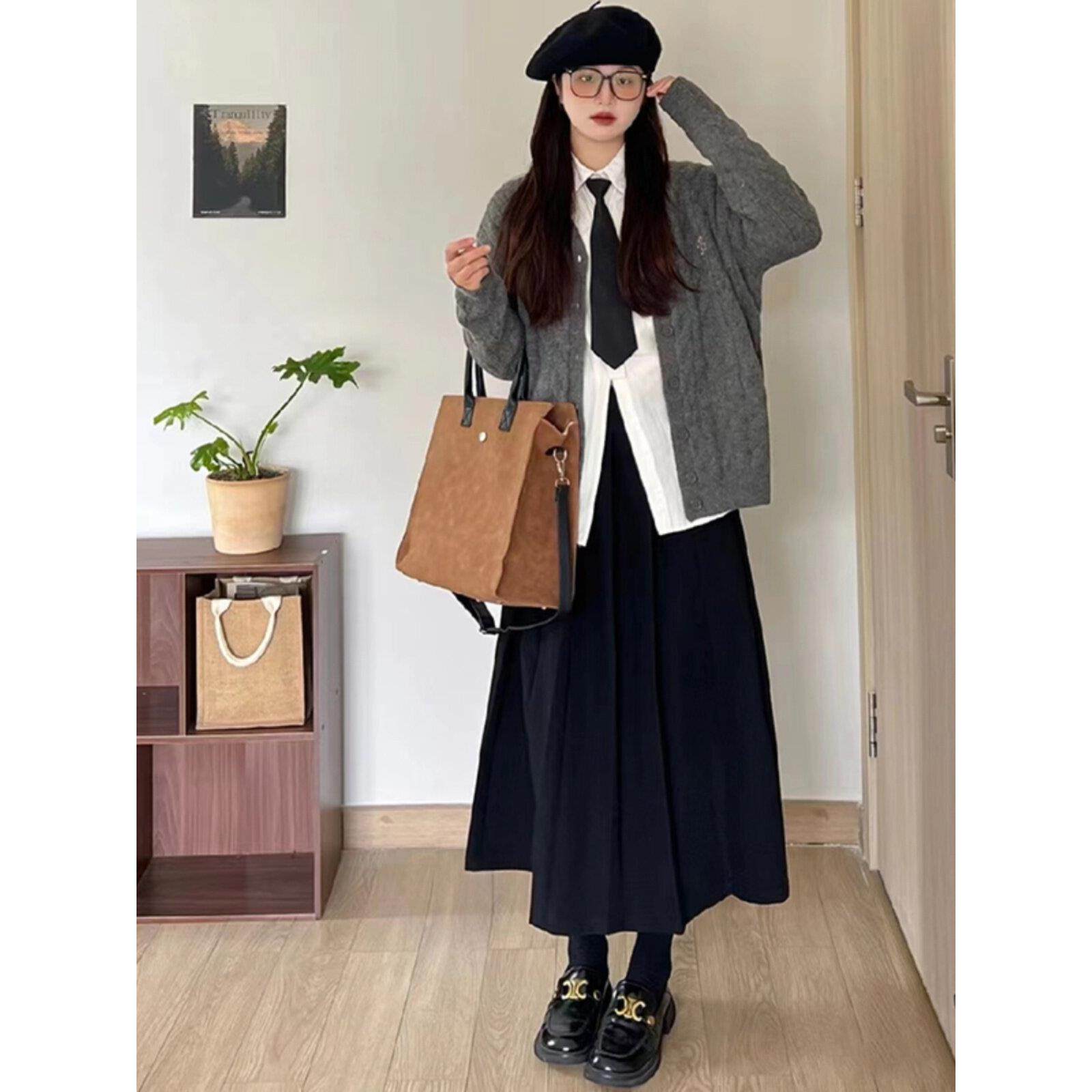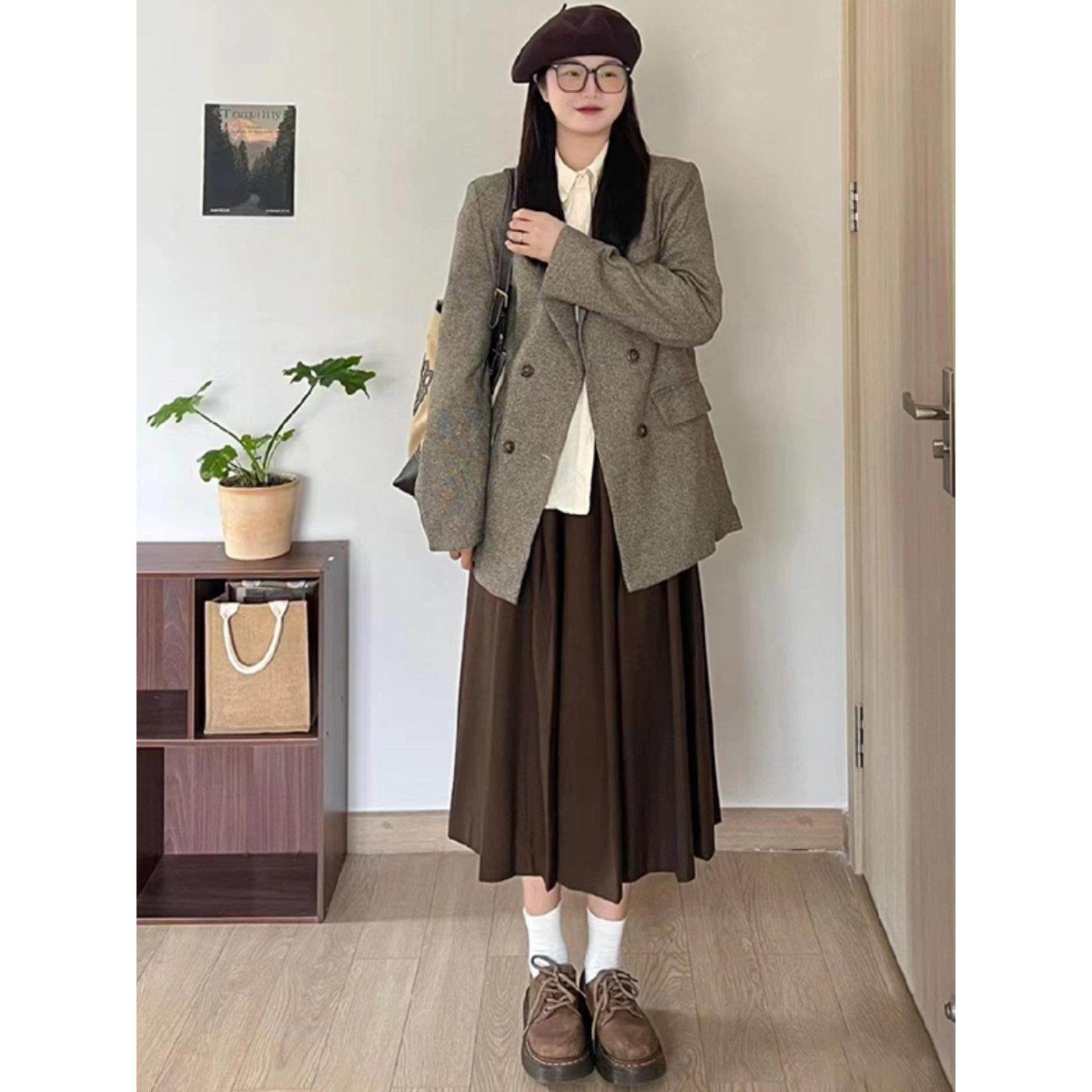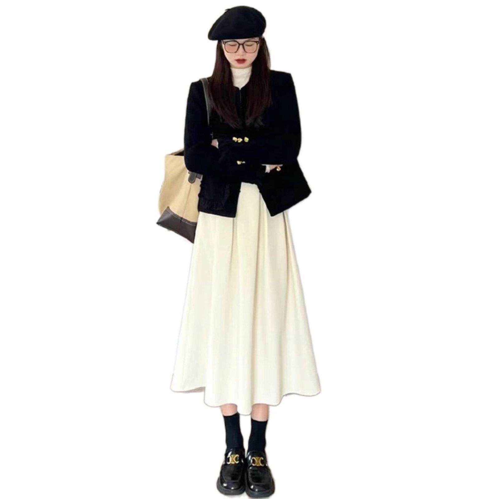 白色毛呢半身裙女小个子春秋高腰显瘦a字伞裙气质中长款百褶裙子