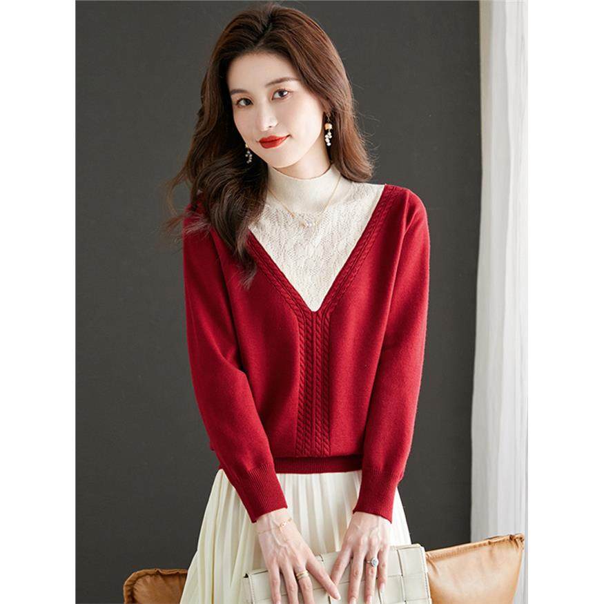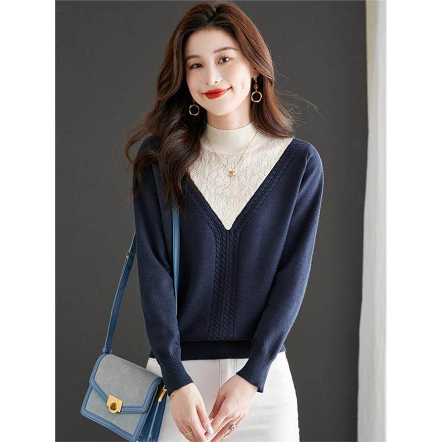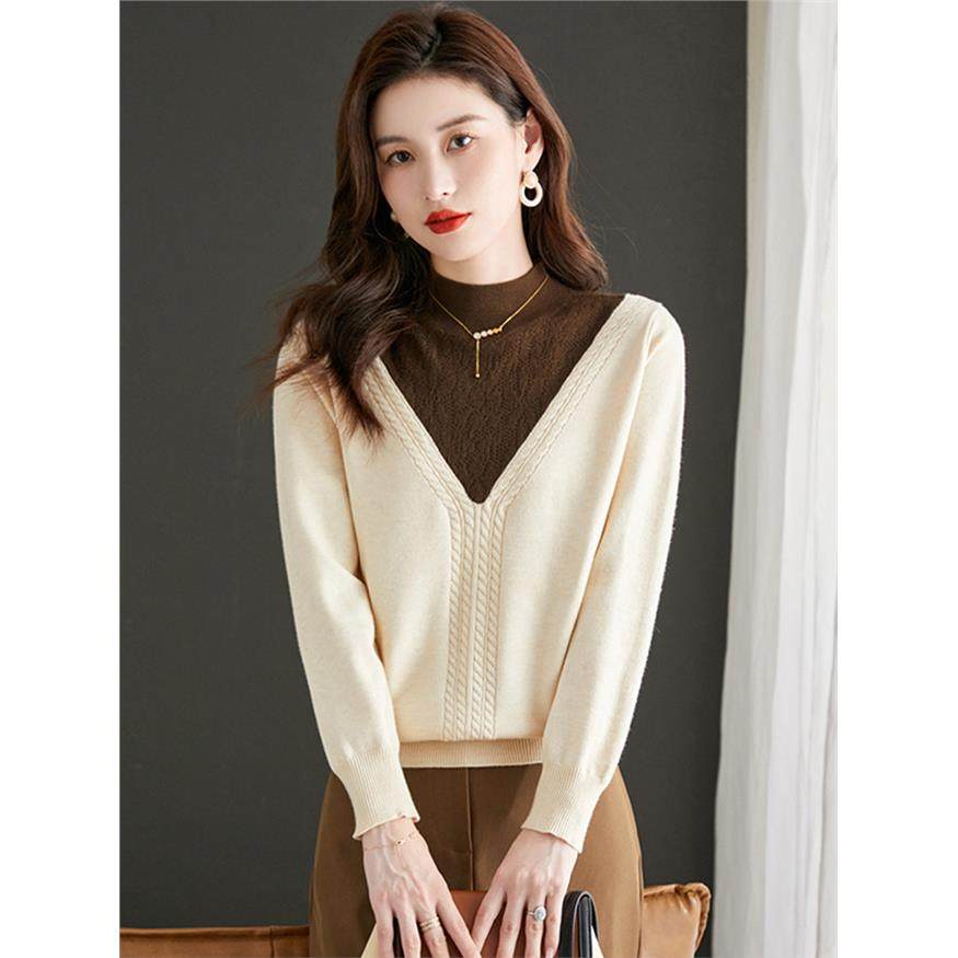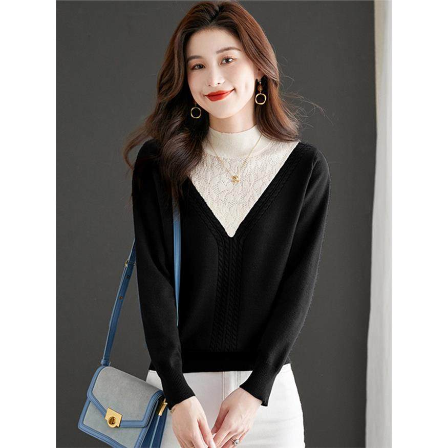 高级感针织打底衫女秋冬季内搭洋气小个子毛衣假两件上衣2025新款