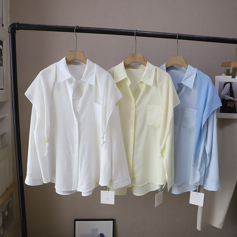 首页> 女装> [比正]2026春季新款韩版时尚气质显瘦中长款衬衫+针织披肩女6013