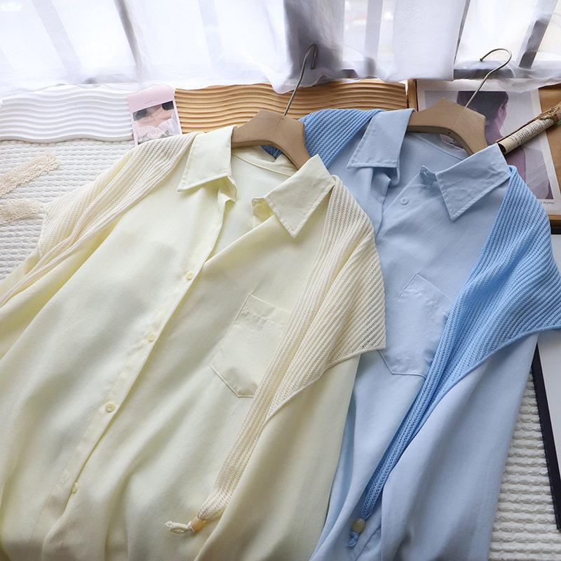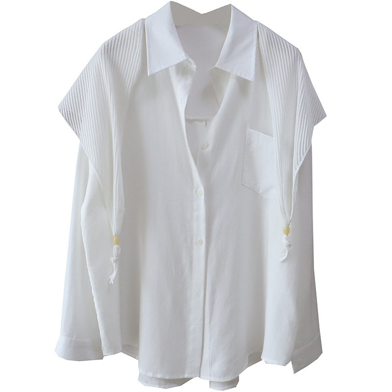 [比正]2026春季新款韩版时尚气质显瘦中长款衬衫+针织披肩女6013