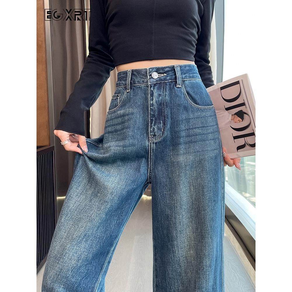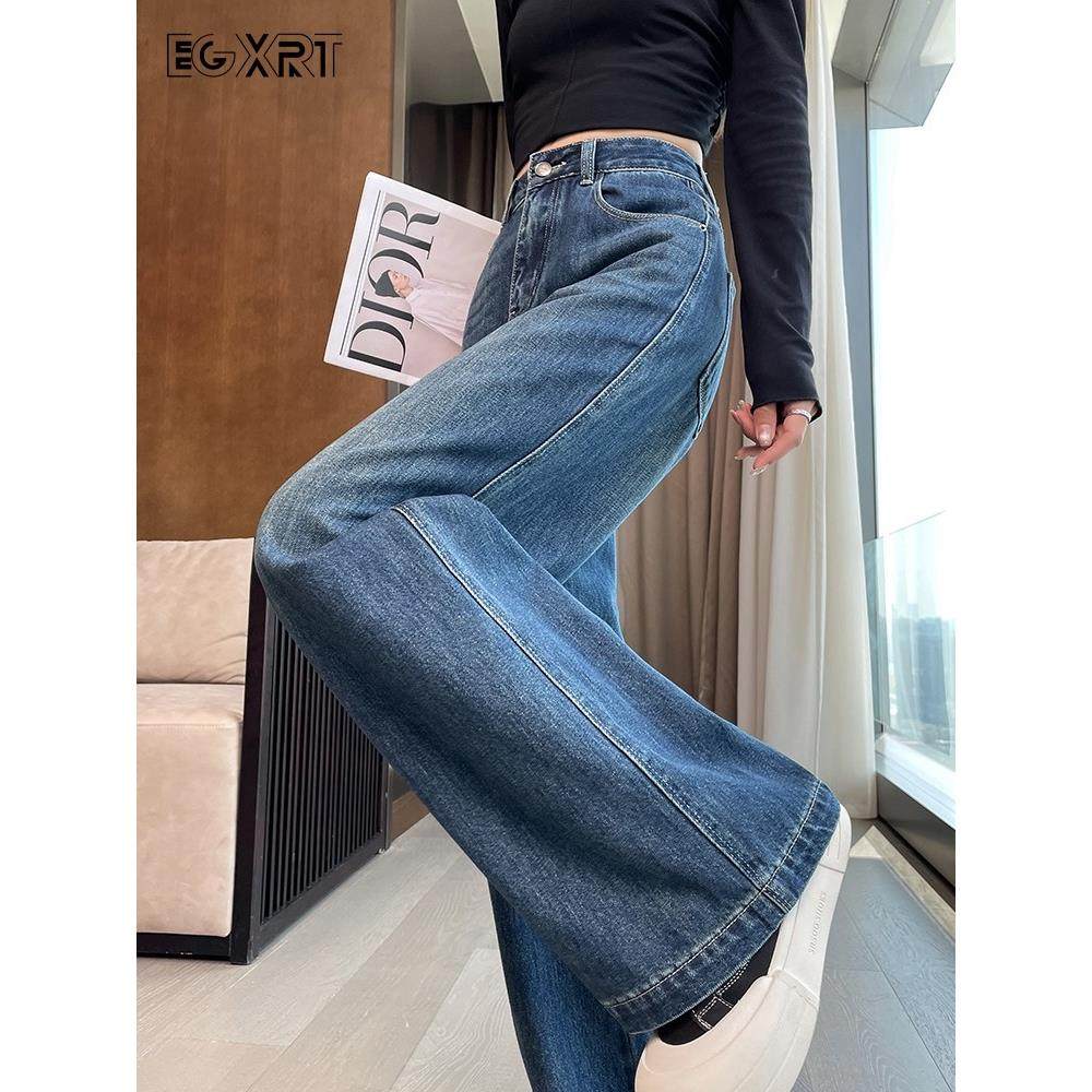 首页> 女装> 深蓝色牛仔阔腿裤女2025年春秋小个子显瘦休闲拖地高腰宽松直筒裤