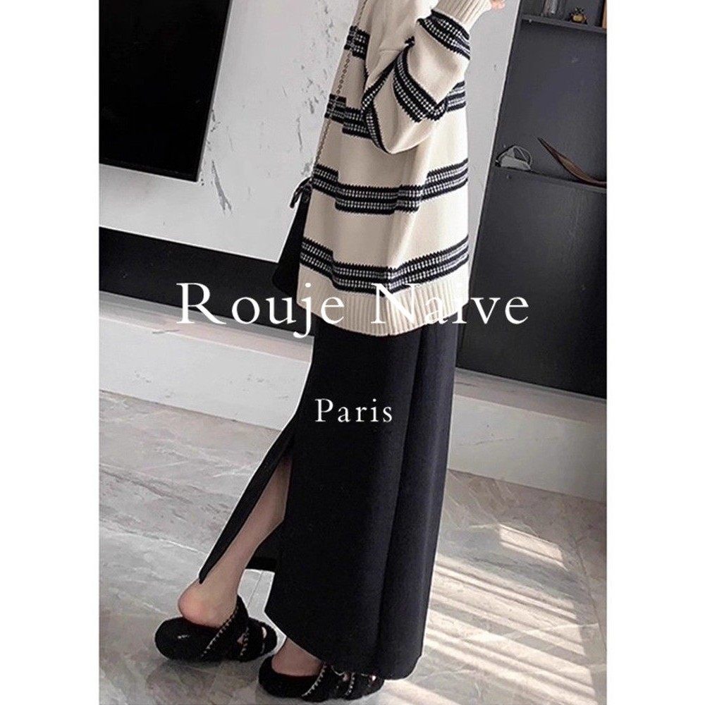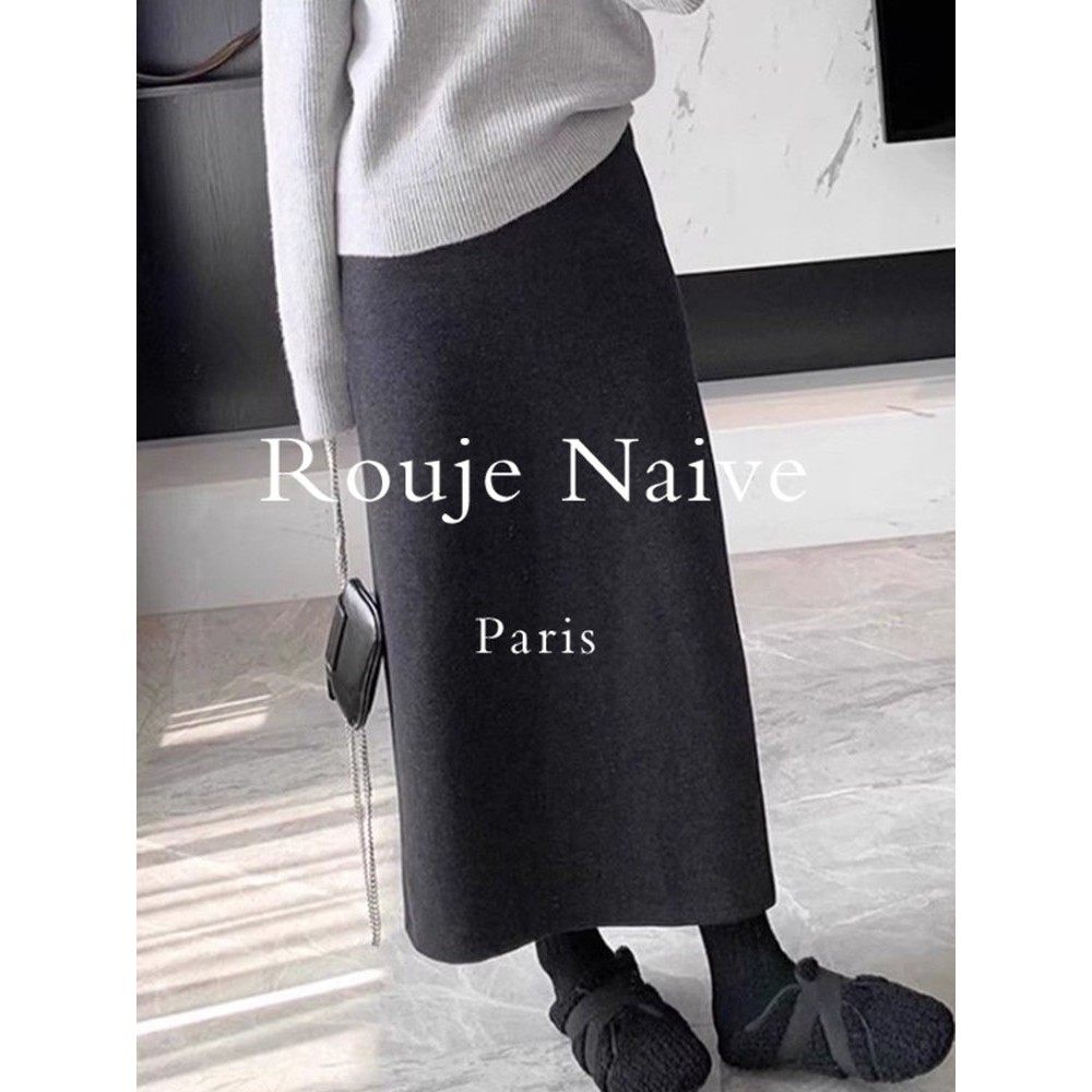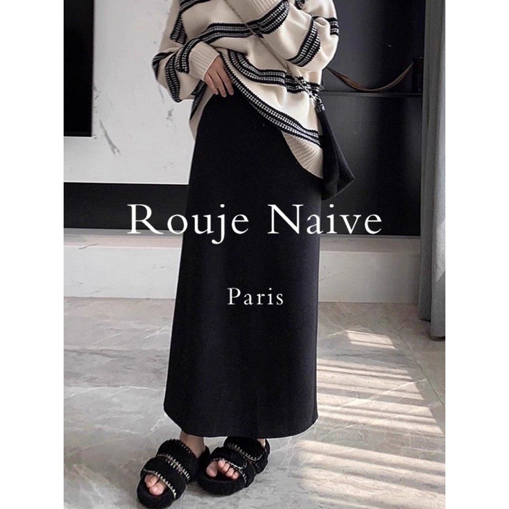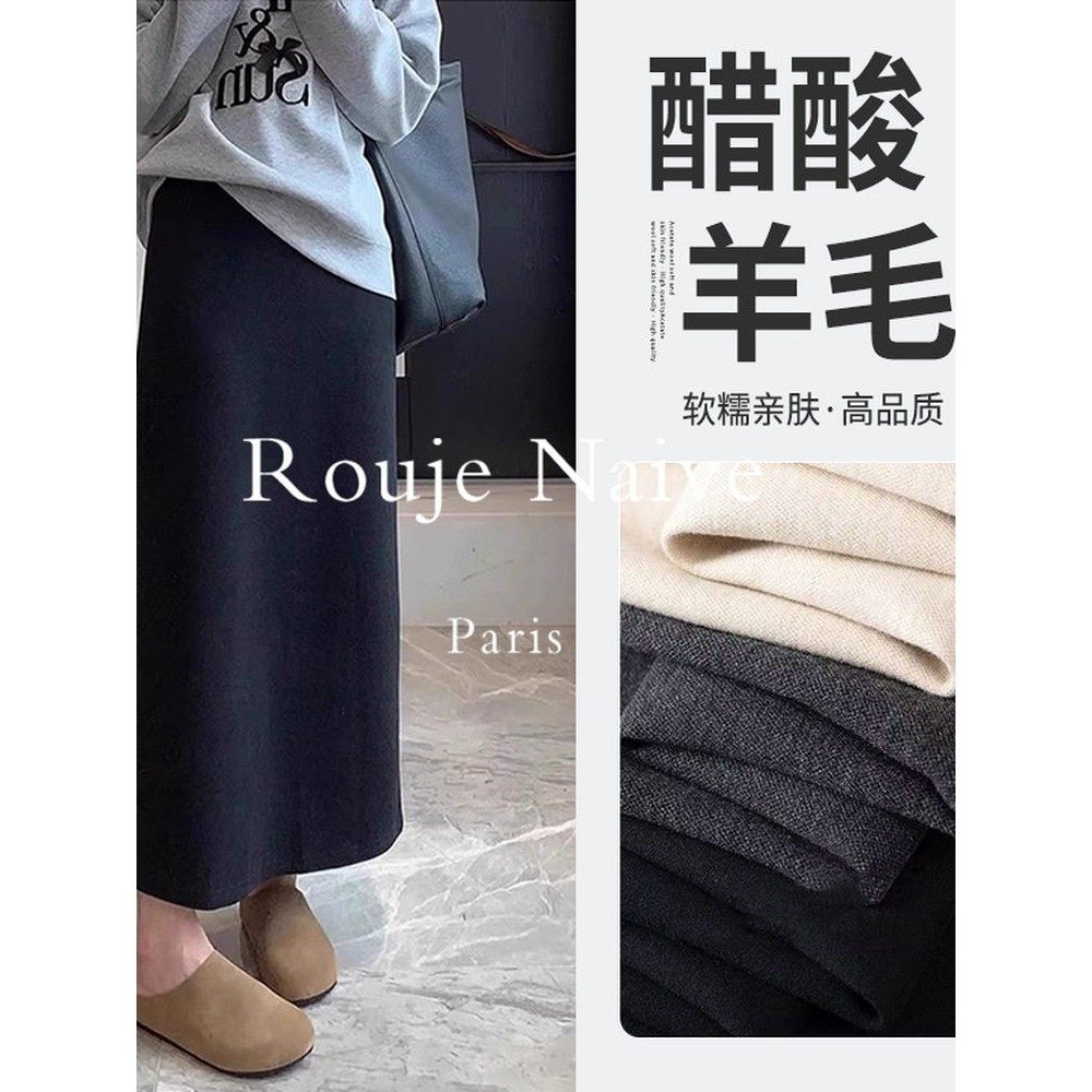 Rouje Naive醋酸羊毛半身裙女秋冬季2025款高腰包臀a字开叉直筒裙