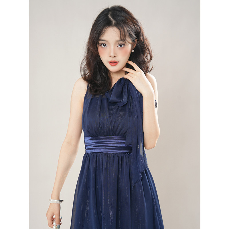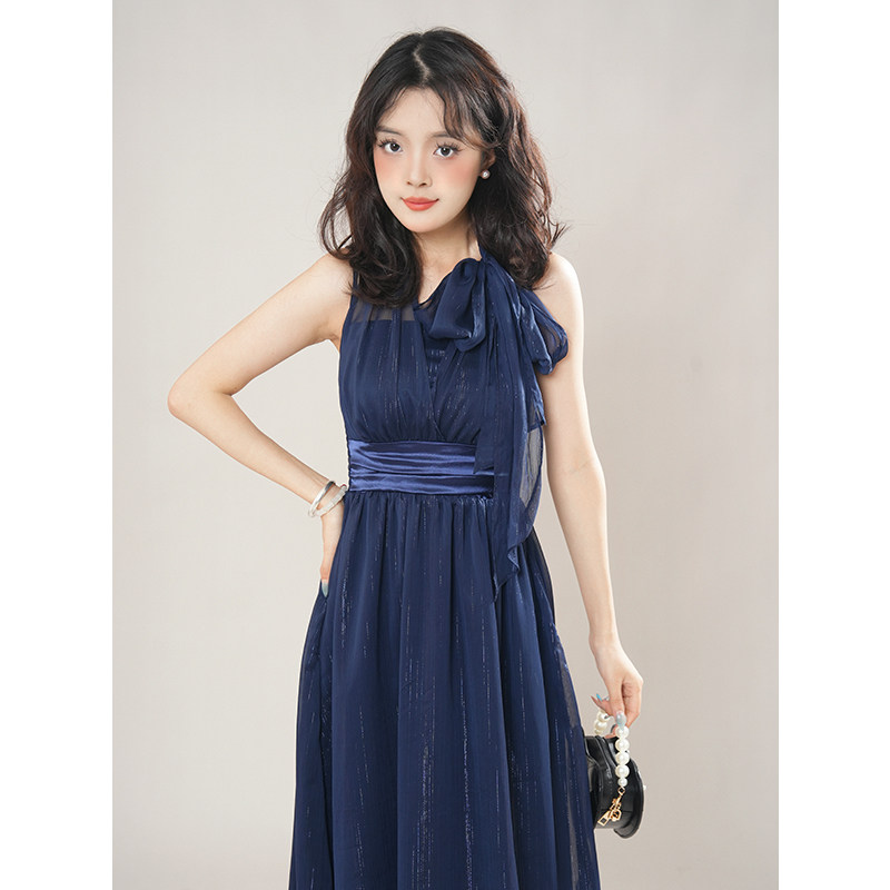 法式高级复古气质挂脖小礼裙女夏季日系昭和风收腰名媛连衣裙短款