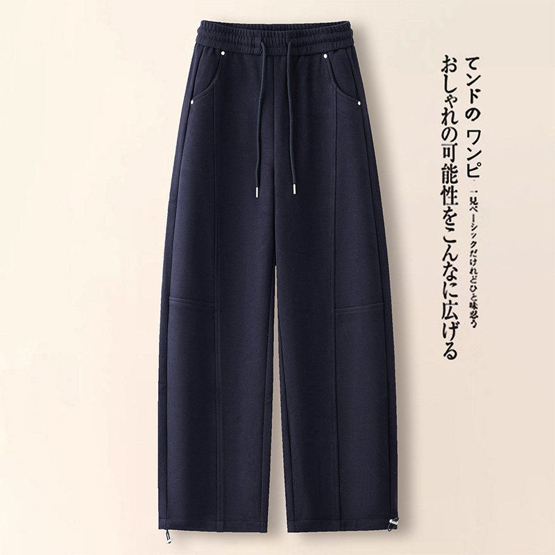 首页> 女装> 啄木鸟藏蓝色弯刀裤女春秋加厚高腰束脚宽松香蕉裤阔腿拖地裤子