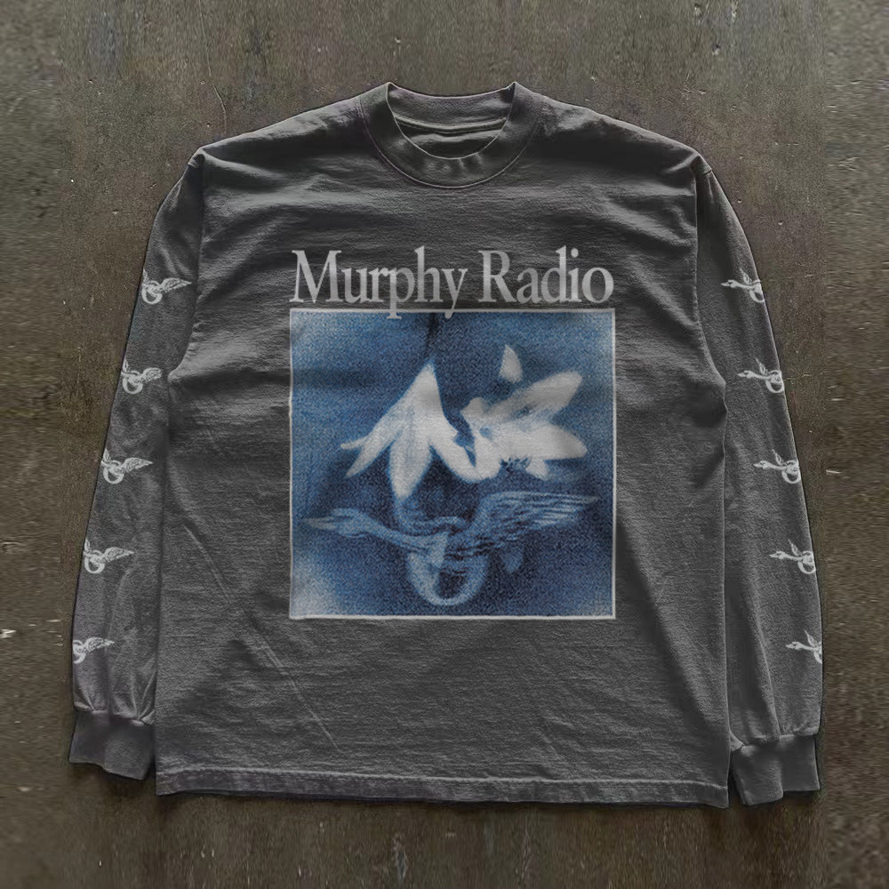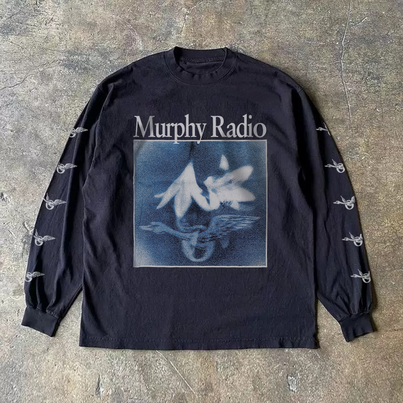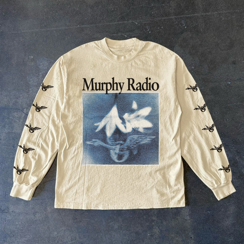 300克重磅!趣味圆领高街上衣印花新款宽松套头长袖t恤学生ins风