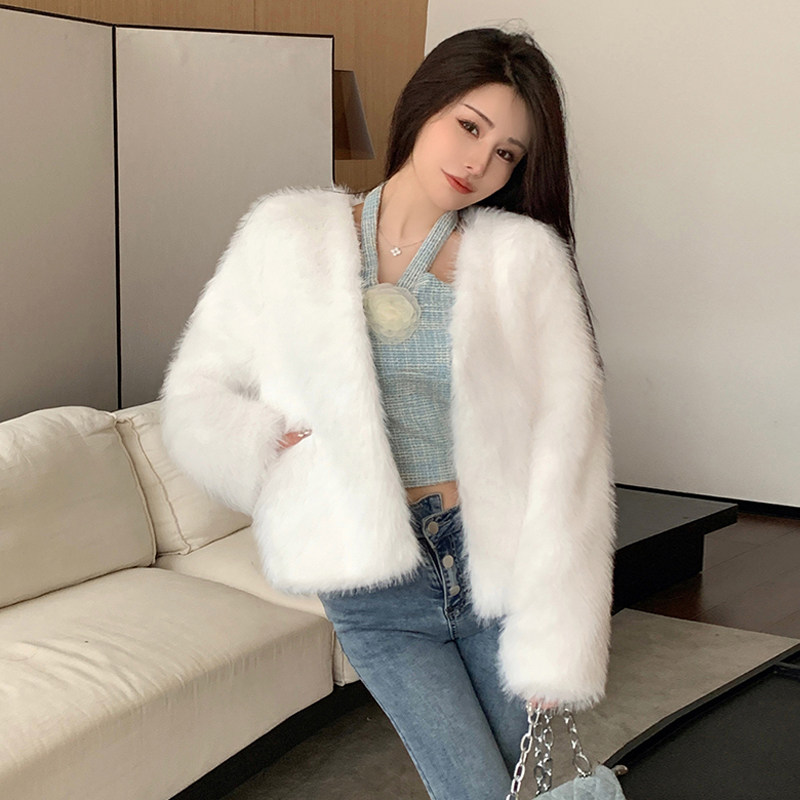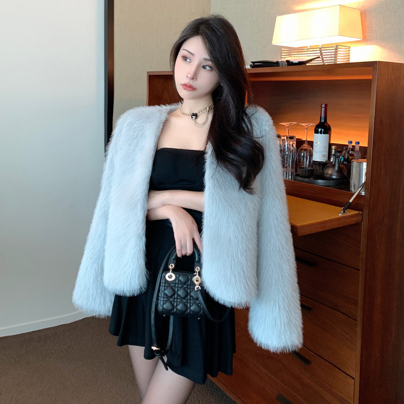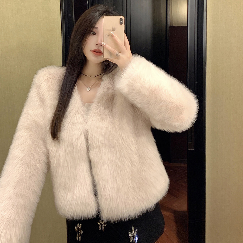 实拍 韩版冬季新款狐狸毛皮草外套女短款V领年轻时尚百搭网红爆款