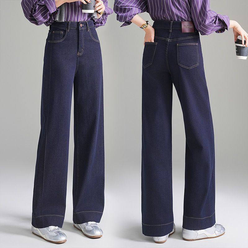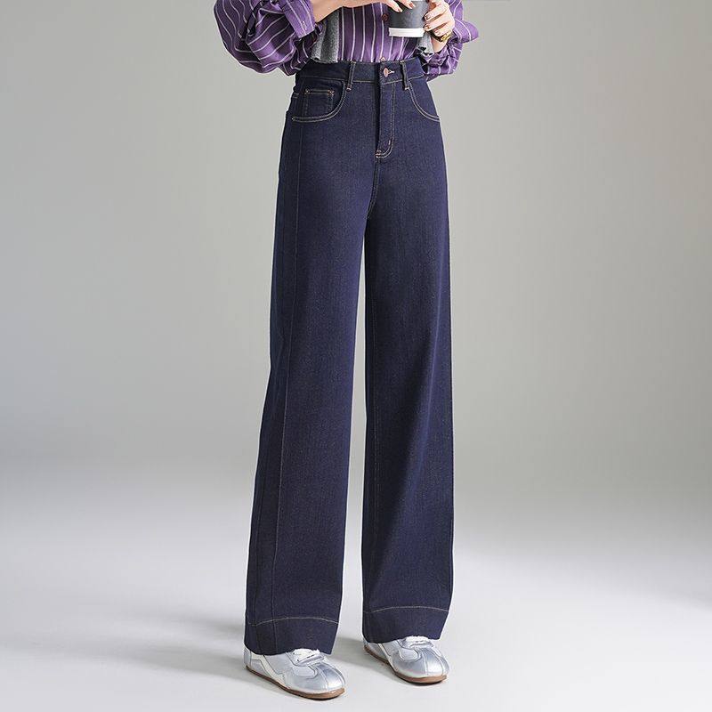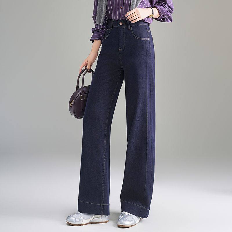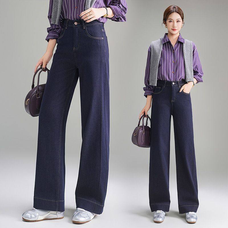 时尚窄版阔腿牛仔裤女春秋季2026新款宽松显瘦小个子直筒休闲裤子