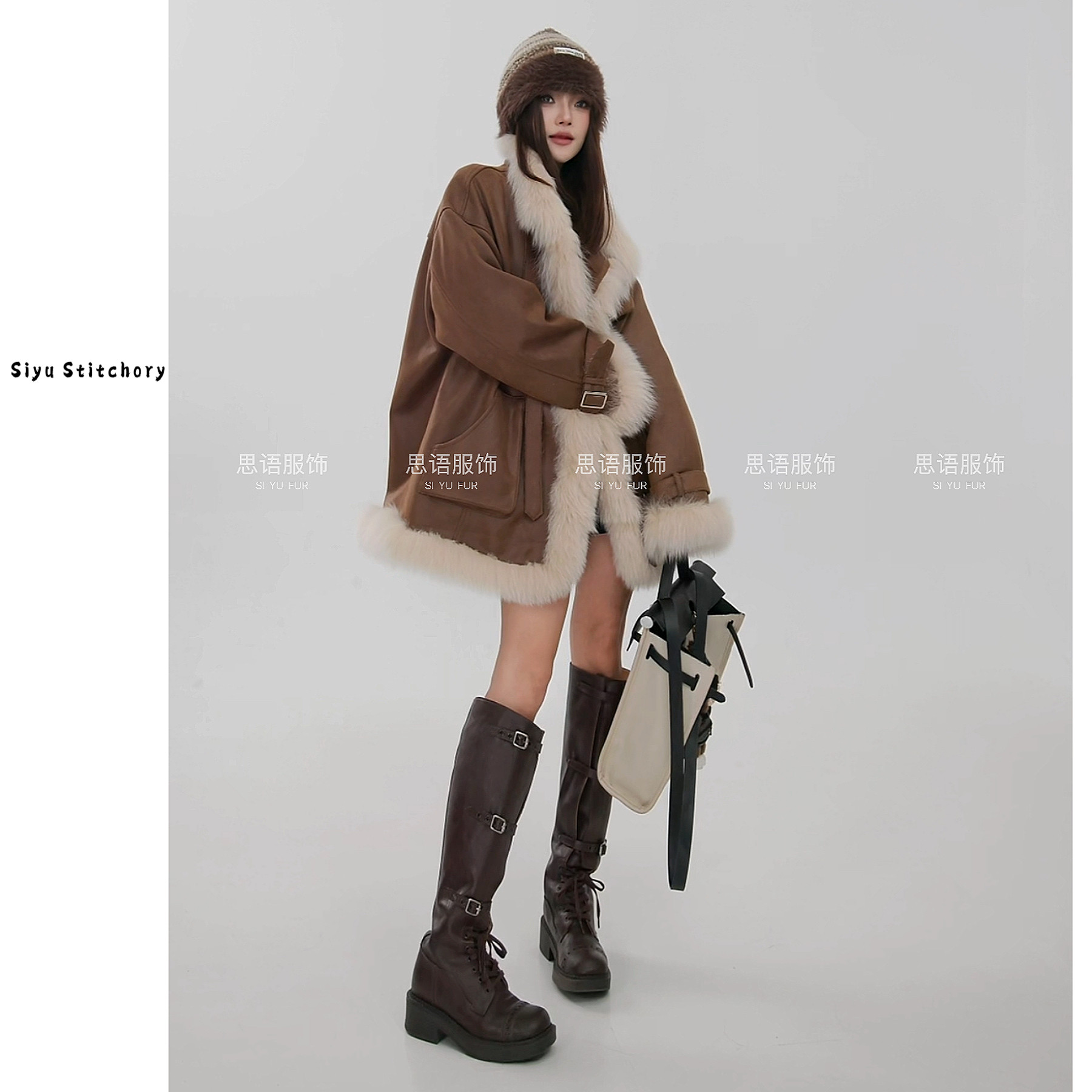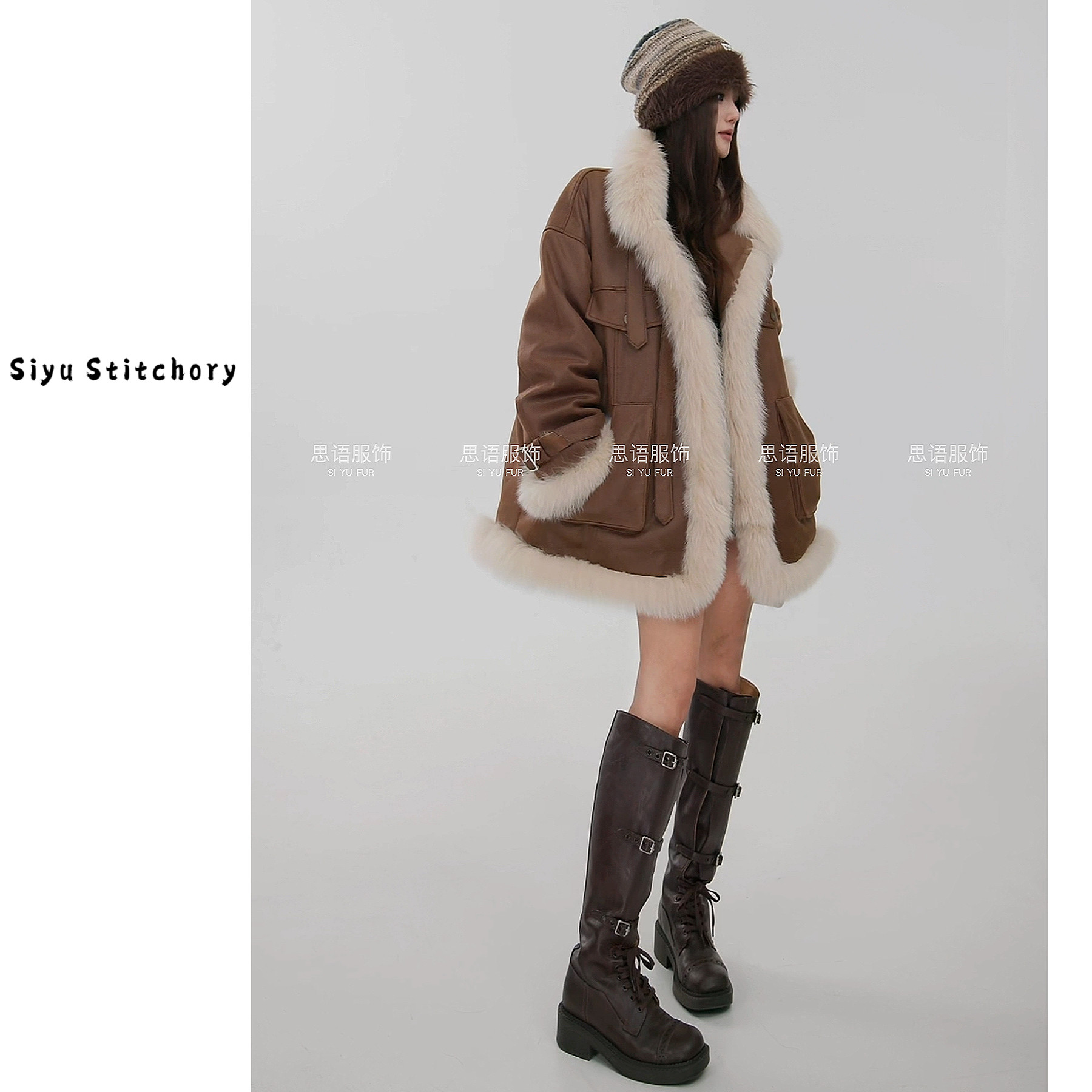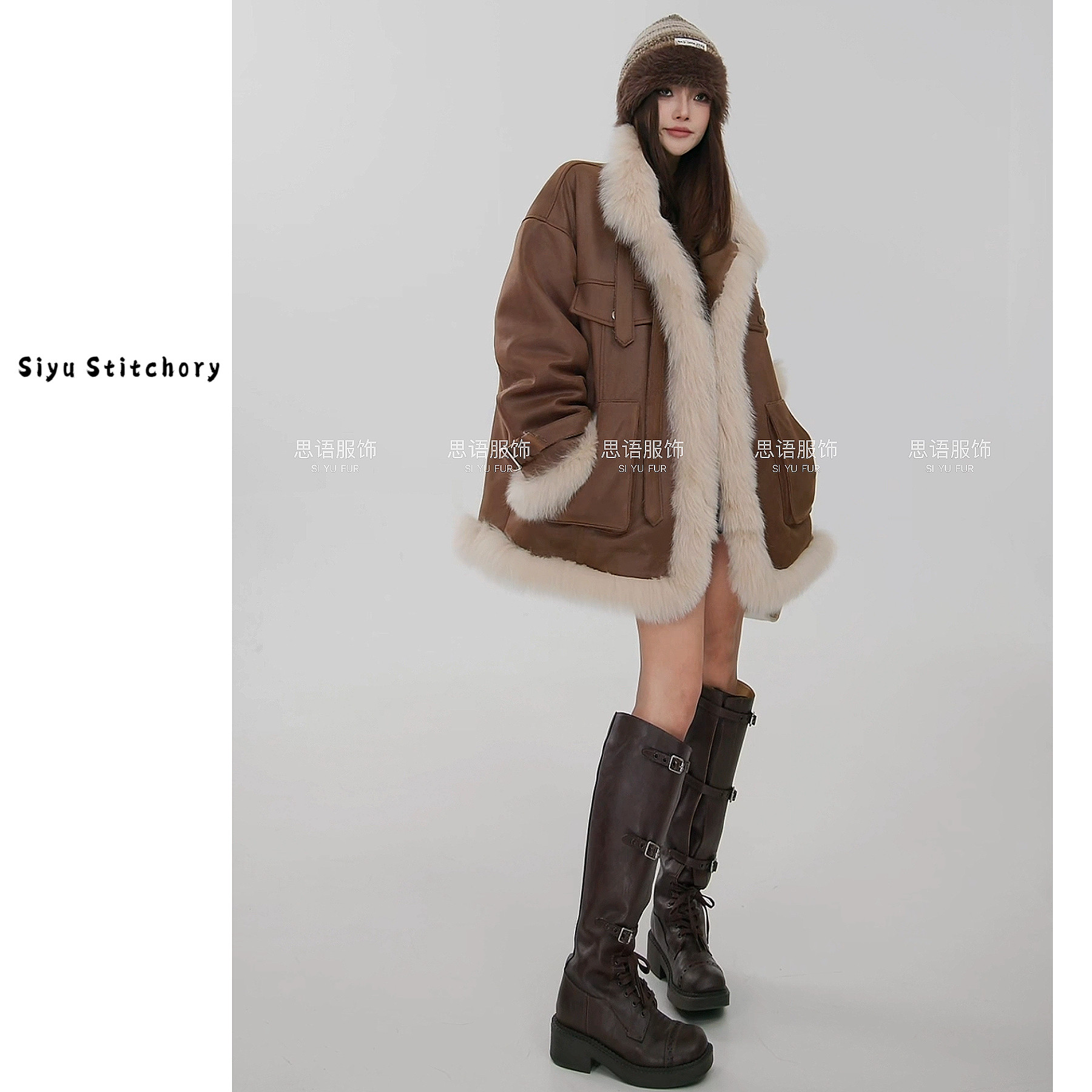 【思语】“格林” CC260124 设计师新款狐狸毛领皮草鹅绒