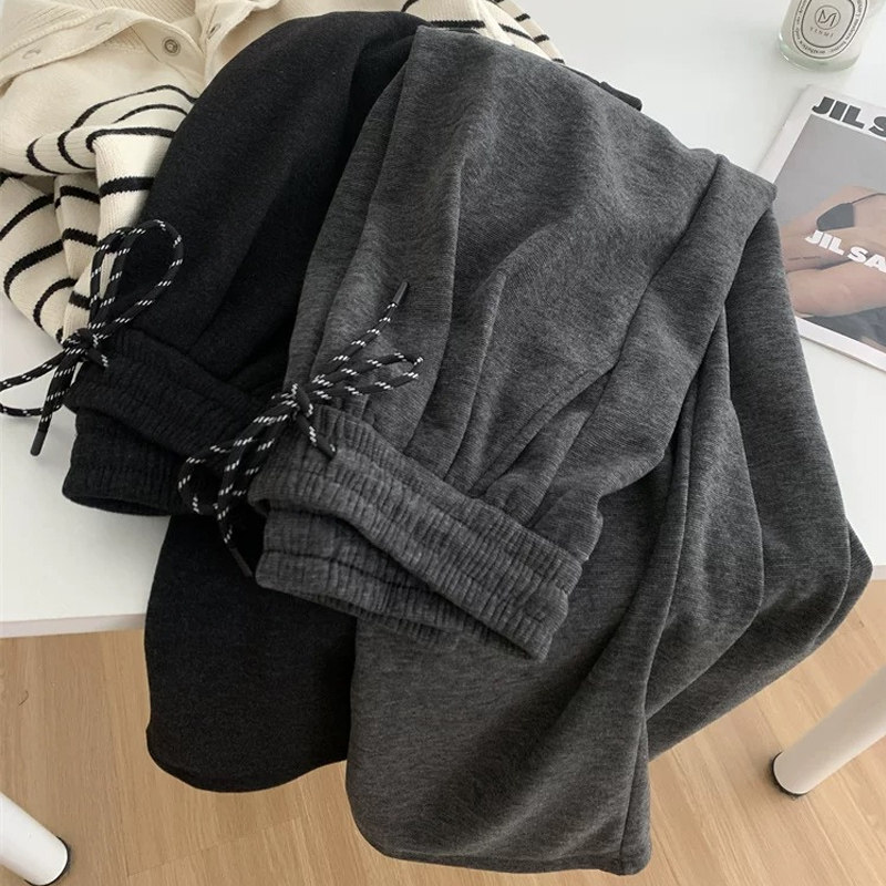 首页> 女装> 小个子150穿搭深灰糯米休闲裤女高腰阔腿裤秋冬加绒保暖直筒长裤