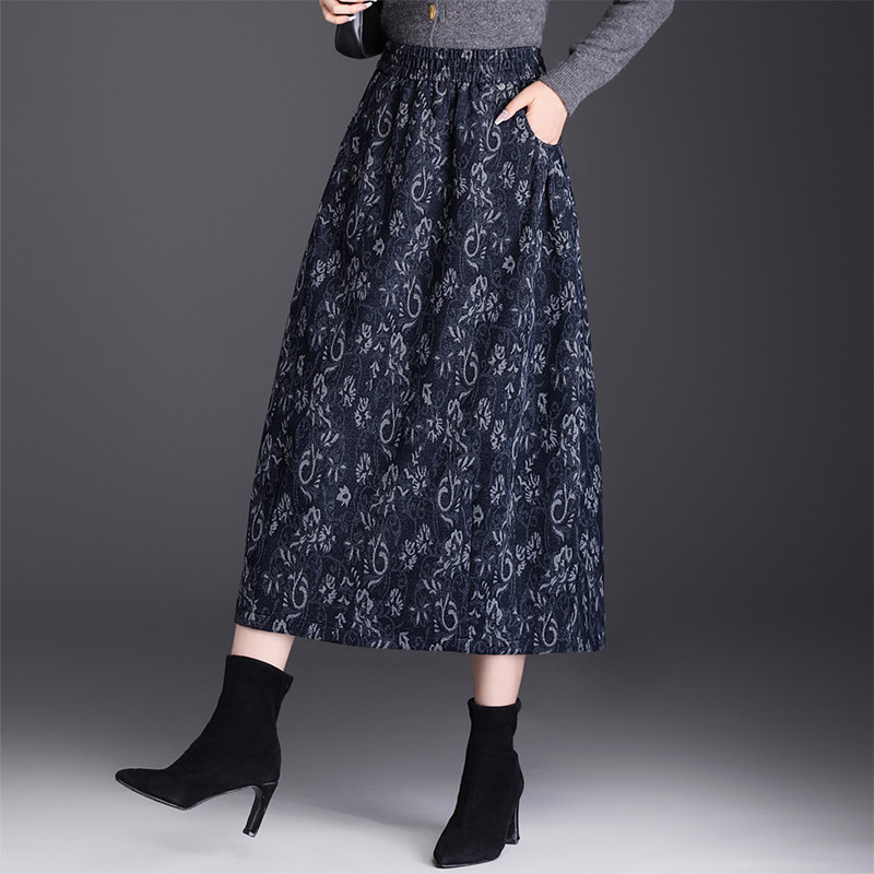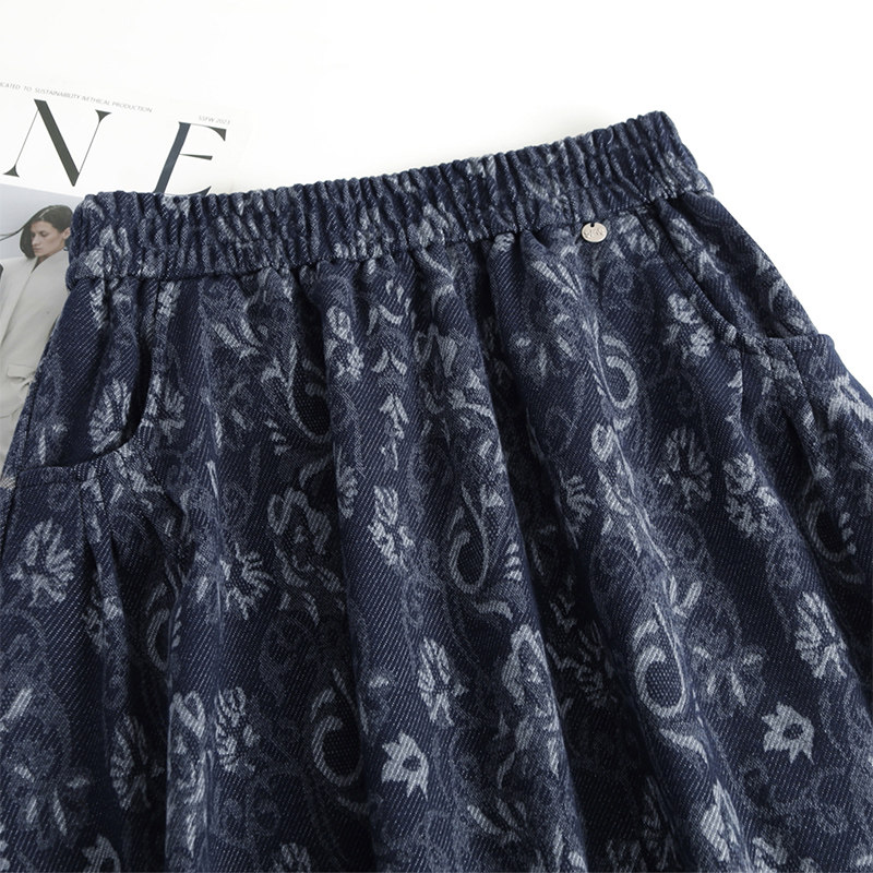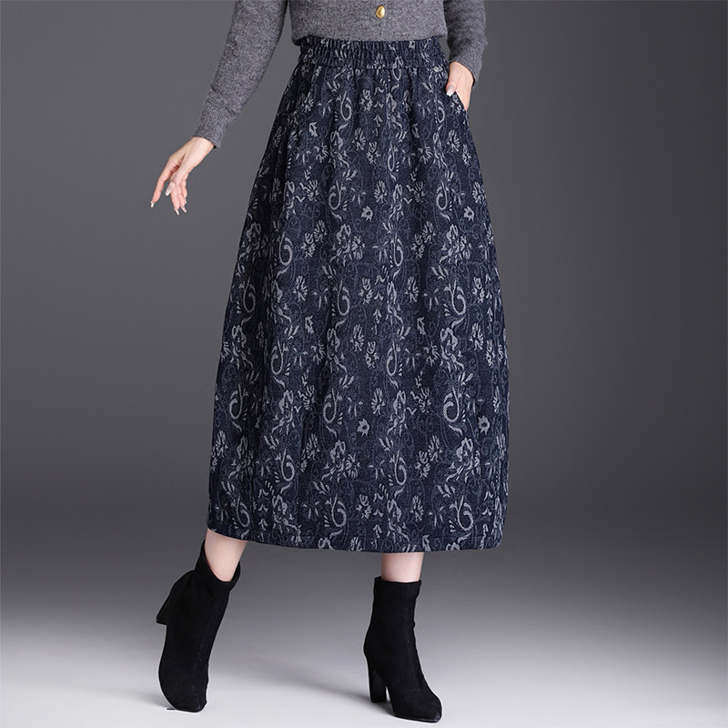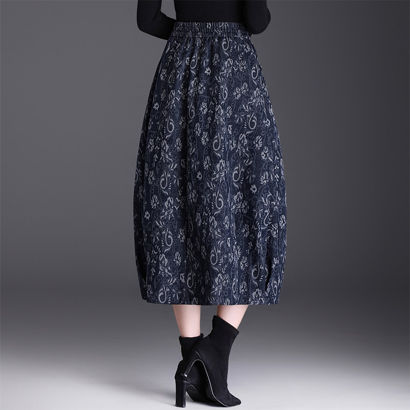 首页> 女装> 复古印花毛呢花苞裙半身裙女秋冬2025新款松紧腰中长款休闲灯笼裙