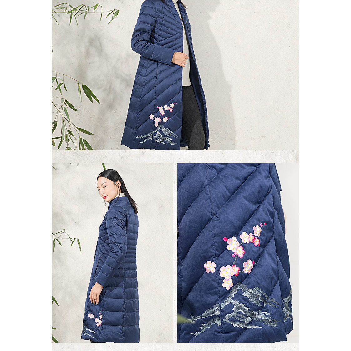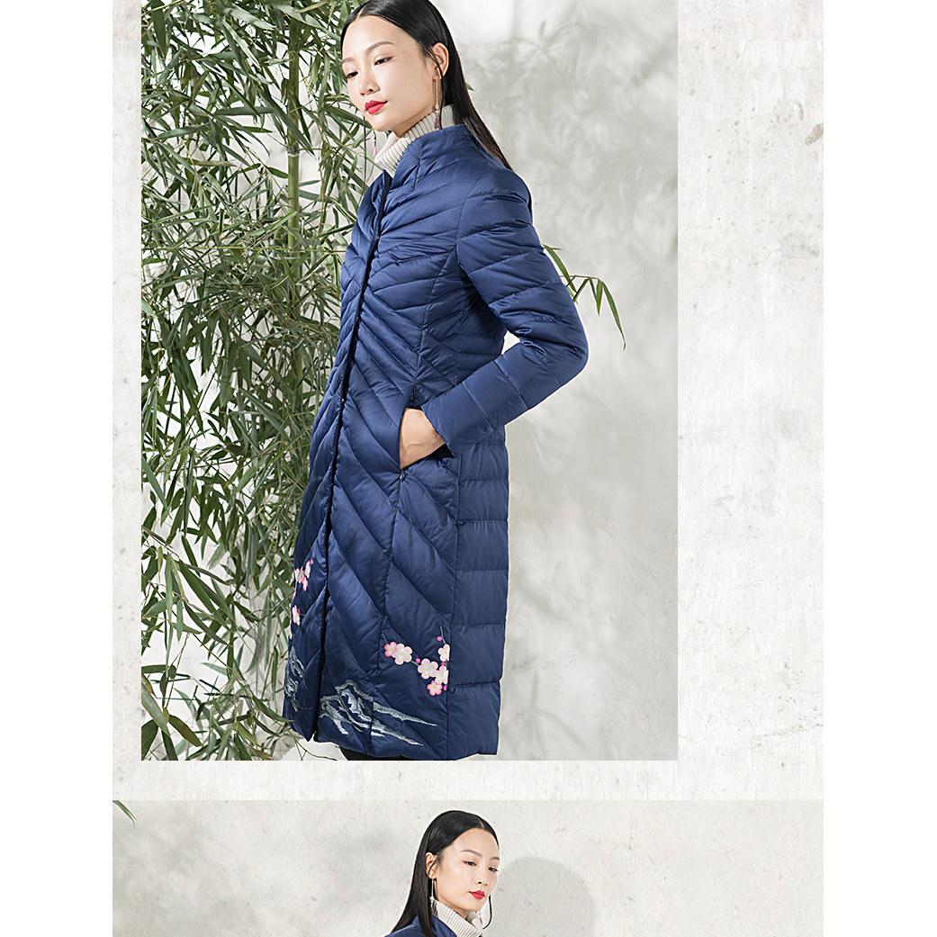 雪国天娇时尚中国风刺绣梅花修身显瘦保暖中长款羽绒服5707283