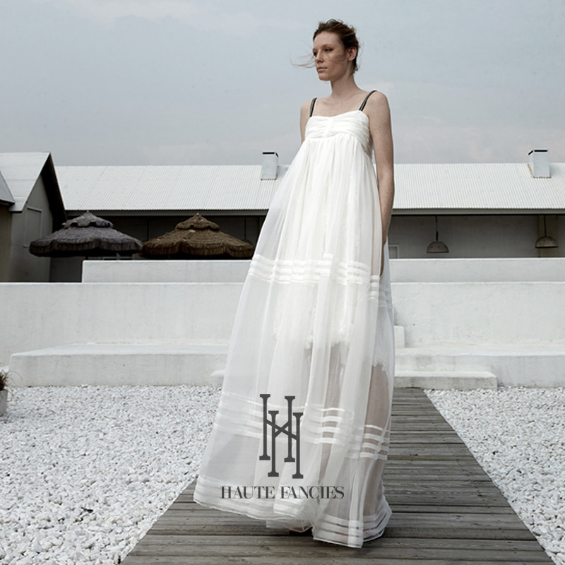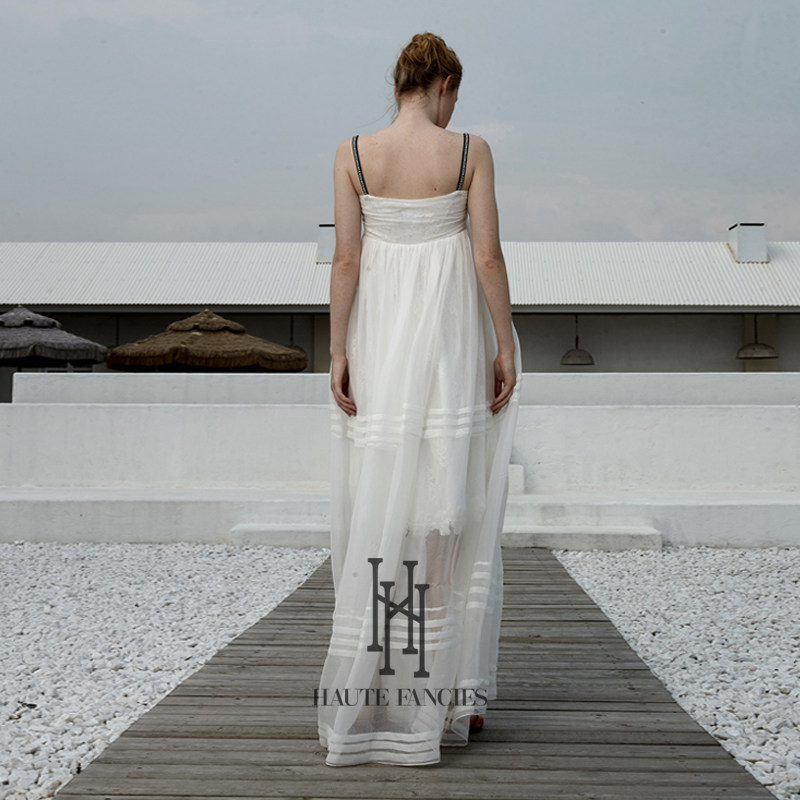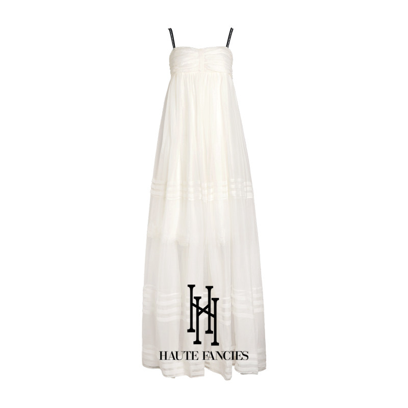 法式渡假风 HAUTE FANCIES后构想|白玫瑰内衬真丝吊带长款连衣裙