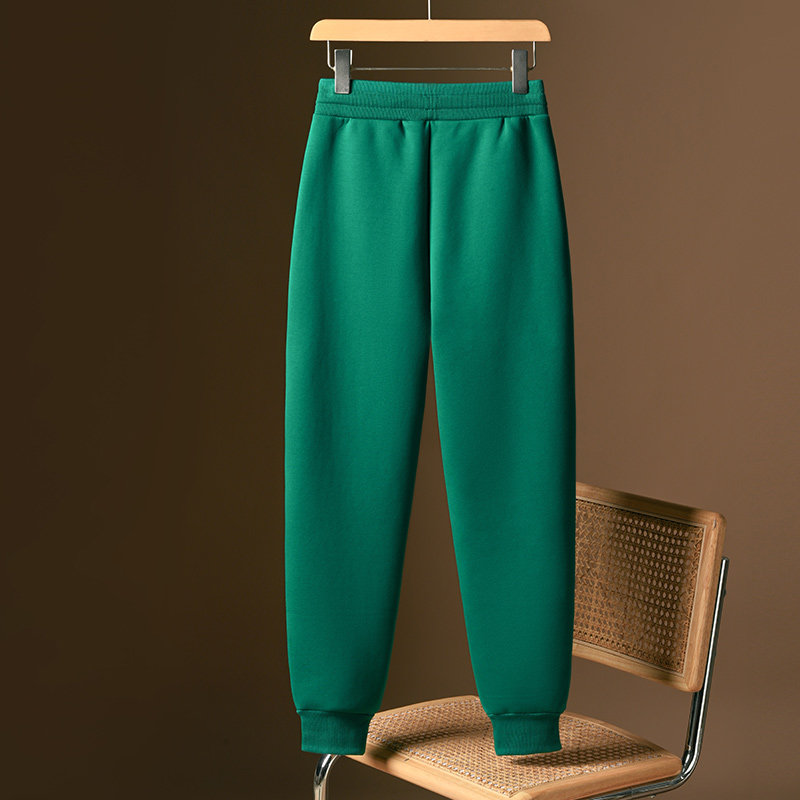 绿色超厚羊羔绒卫裤女士秋冬加绒东北棉裤运动哈伦裤高腰保暖长裤