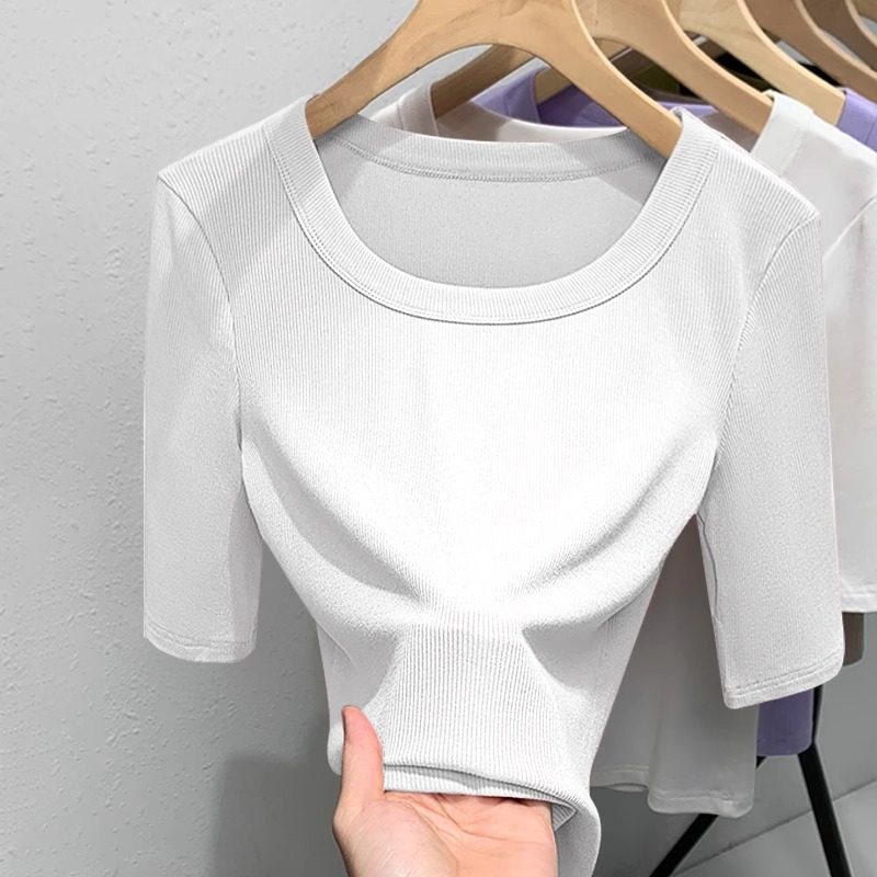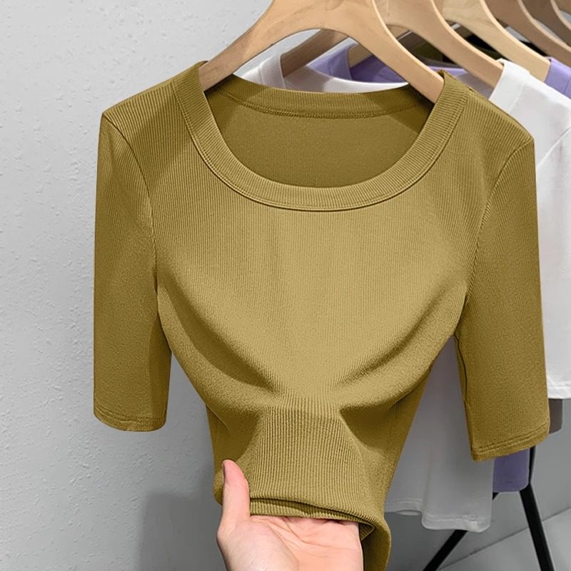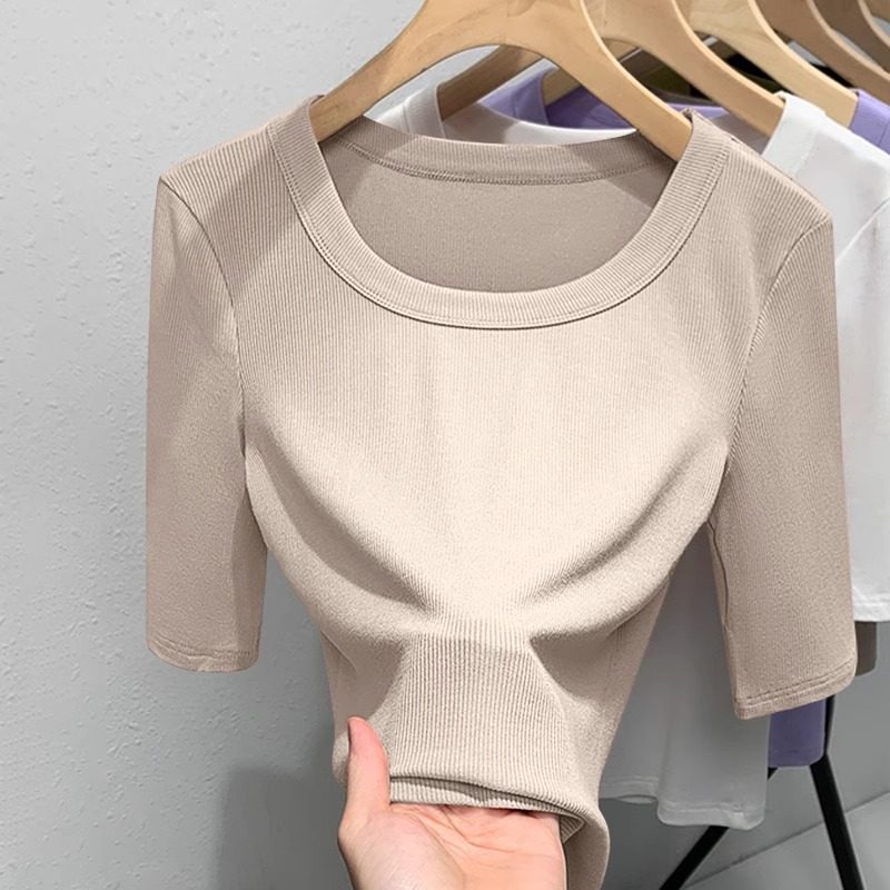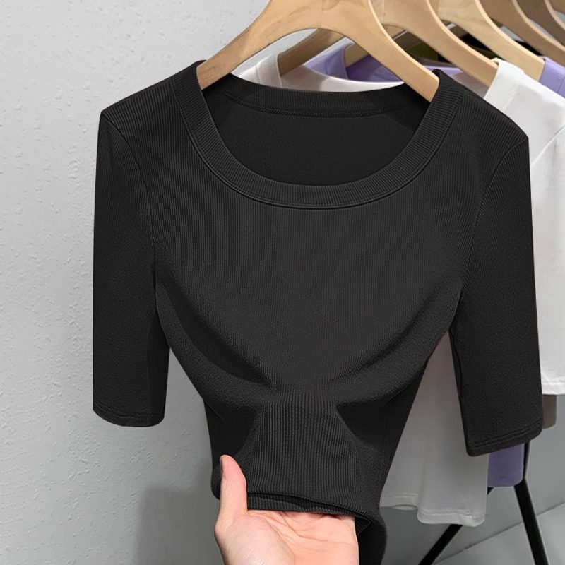 2025新款低圆领莫代尔打底衫女春秋夏季内搭五分袖中袖T恤U领上衣