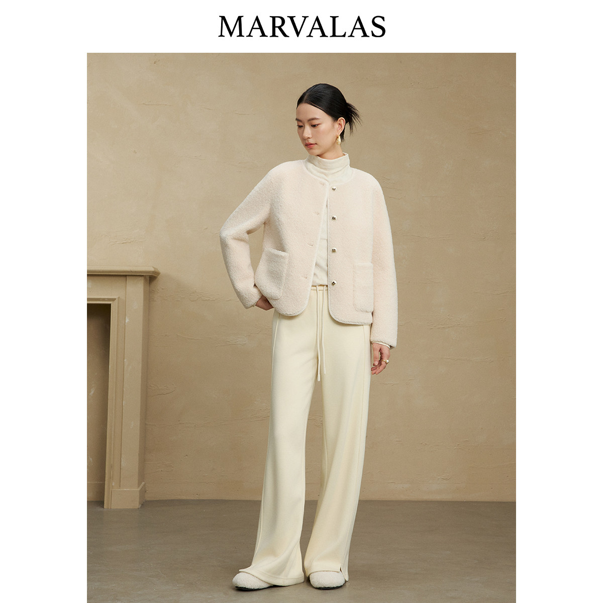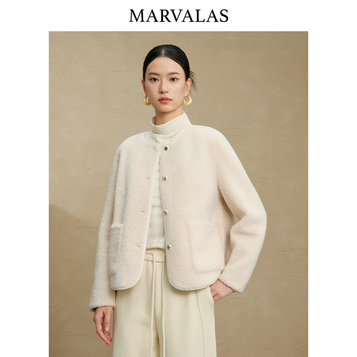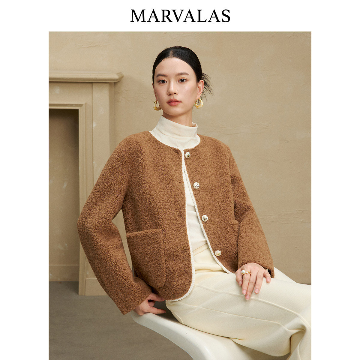 【粉丝专属】曼德诗圈圈毛短外套2025冬季新款时尚撞色门襟气