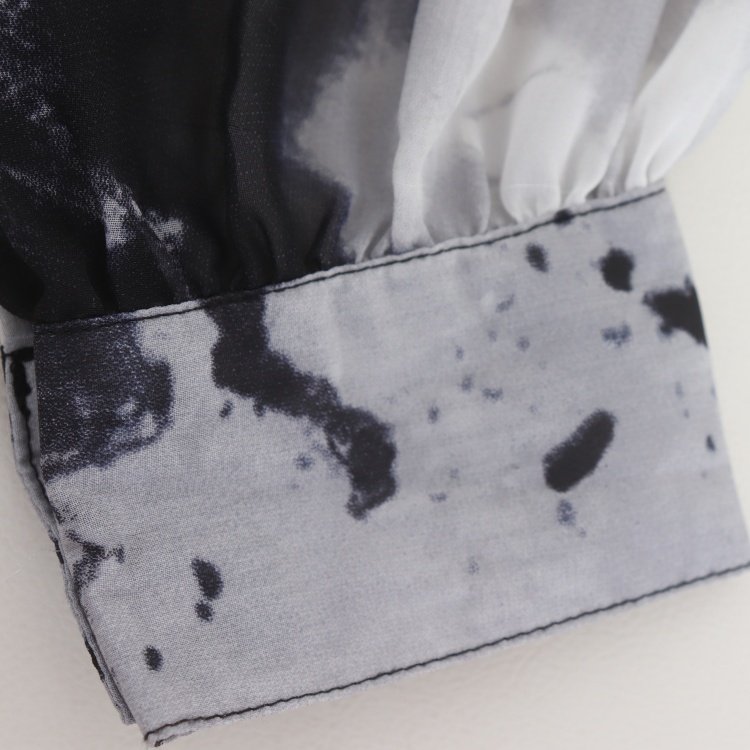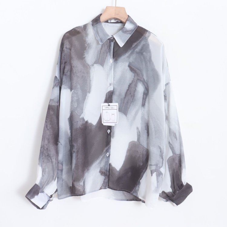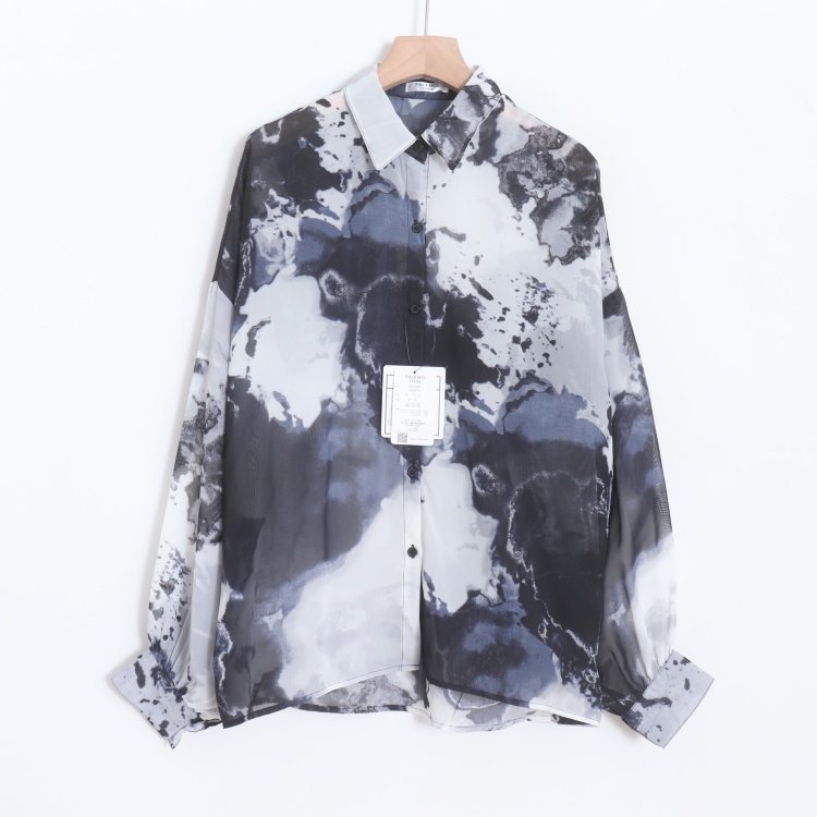首页> 女装> D11006日单新款客供料单排扣宽松女通勤休闲轻薄扎染印花长袖衬衫