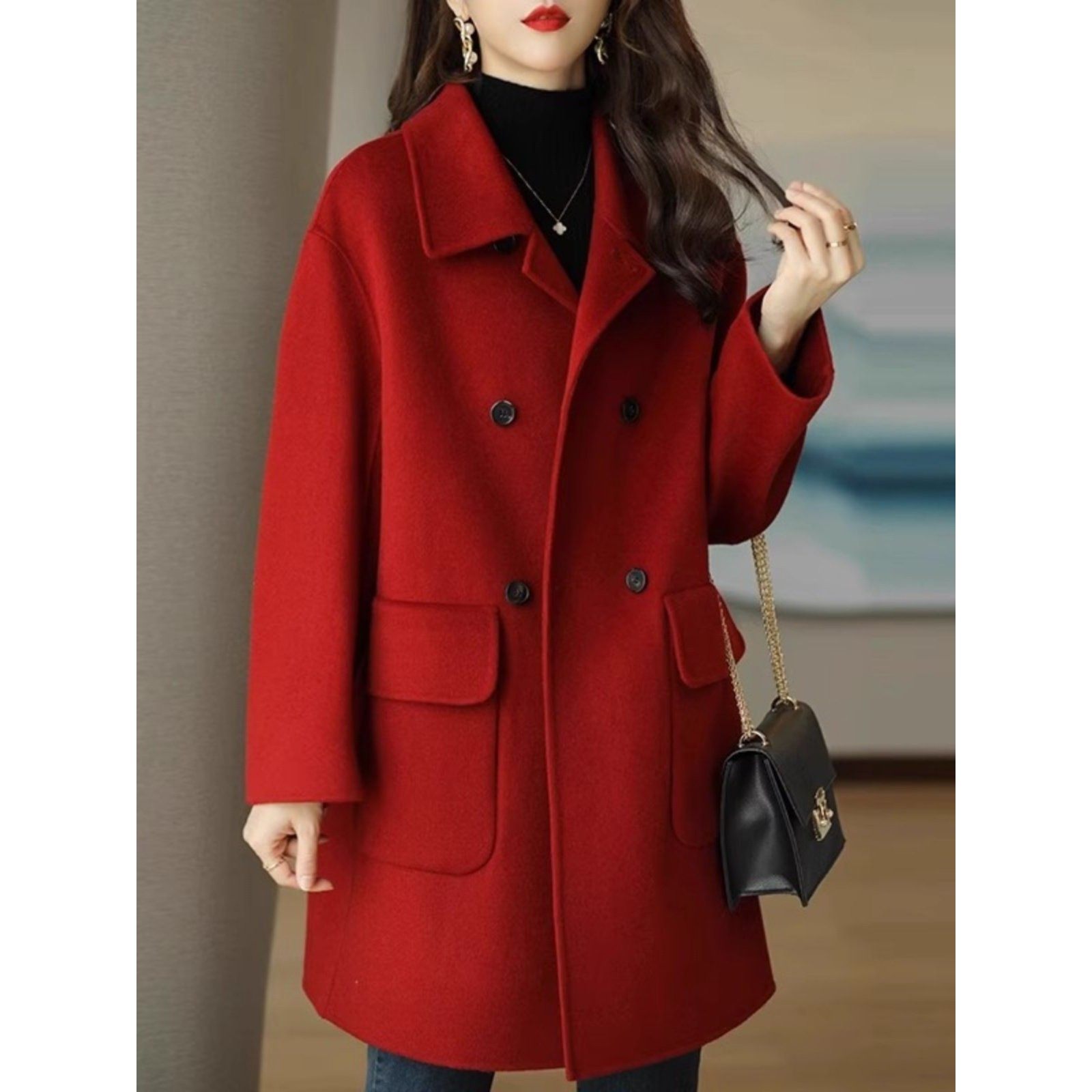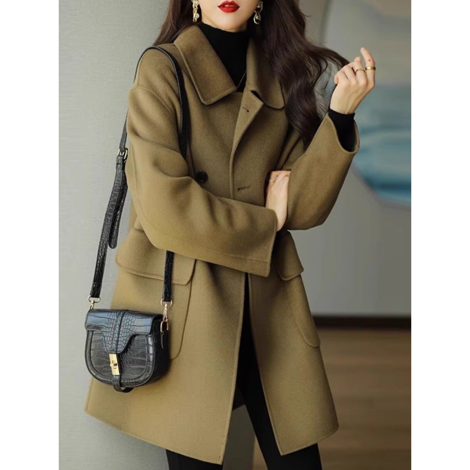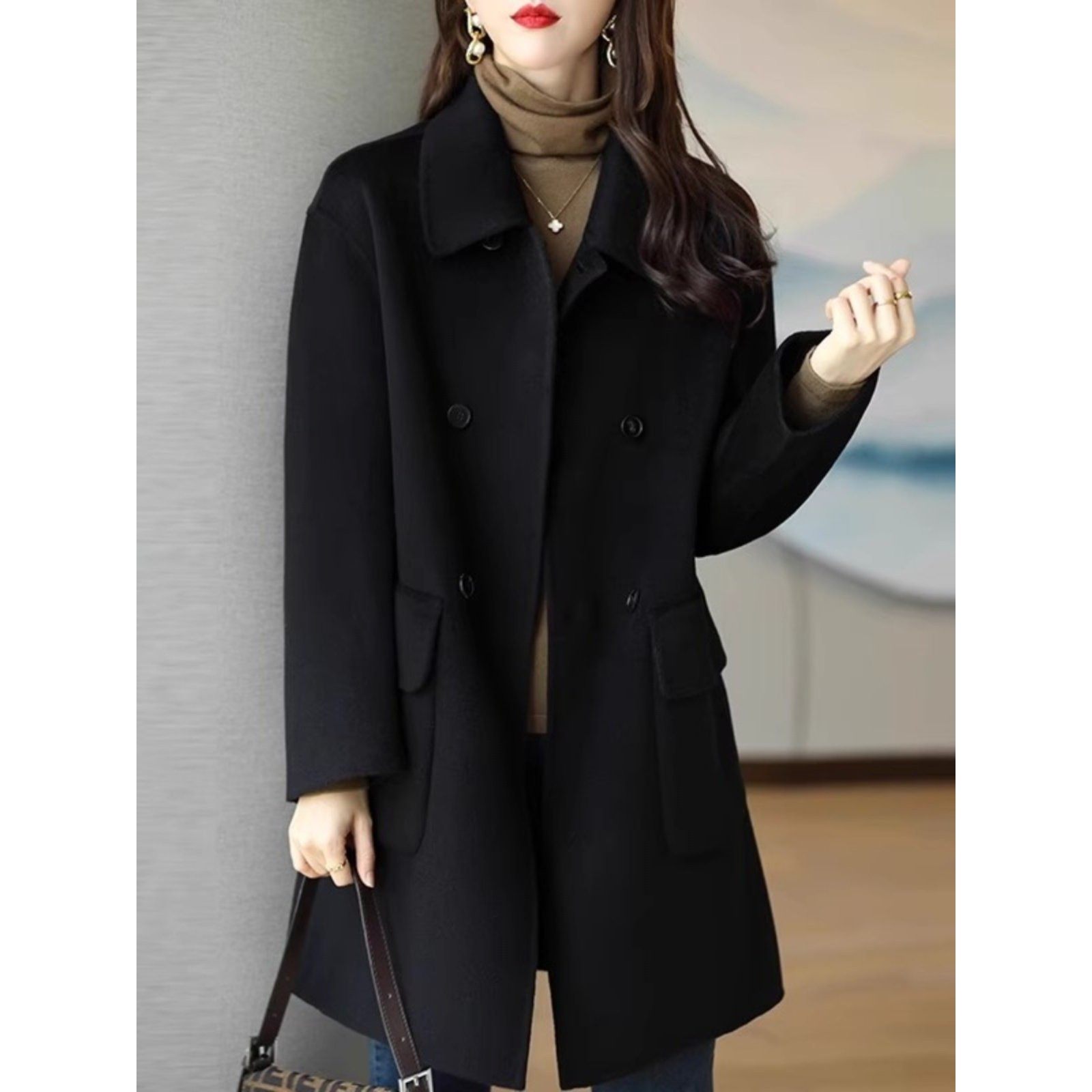 高级感加厚双面羊绒呢子外套女秋冬2025新款韩版宽松中长款大衣女