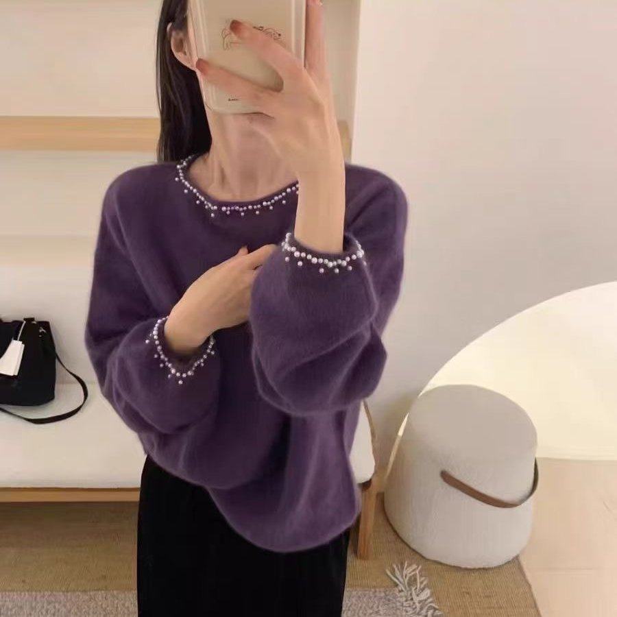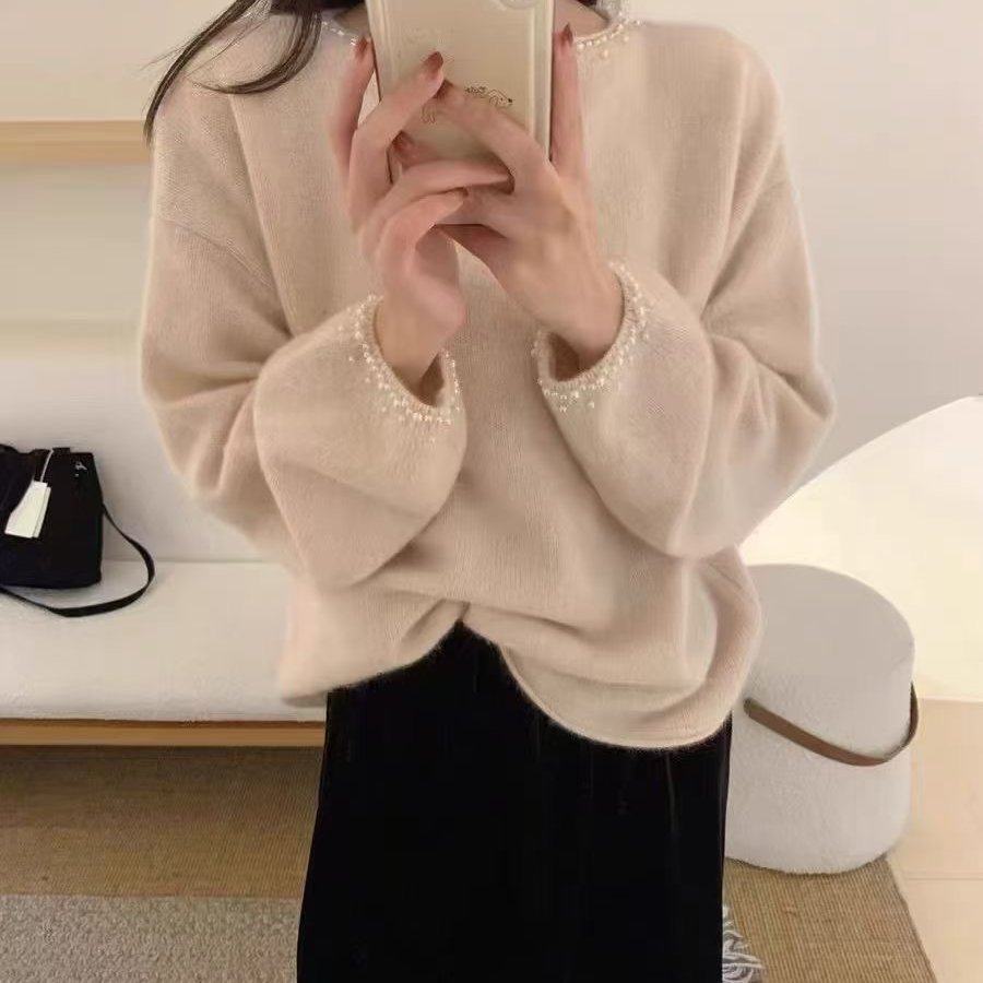 钉珠套头毛衣气质优雅穿搭秋冬季复古软糯宽松长袖针织衫