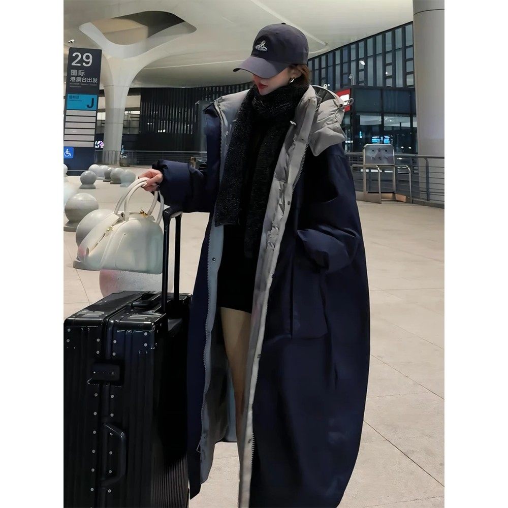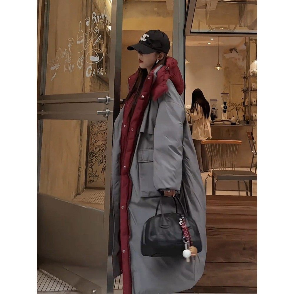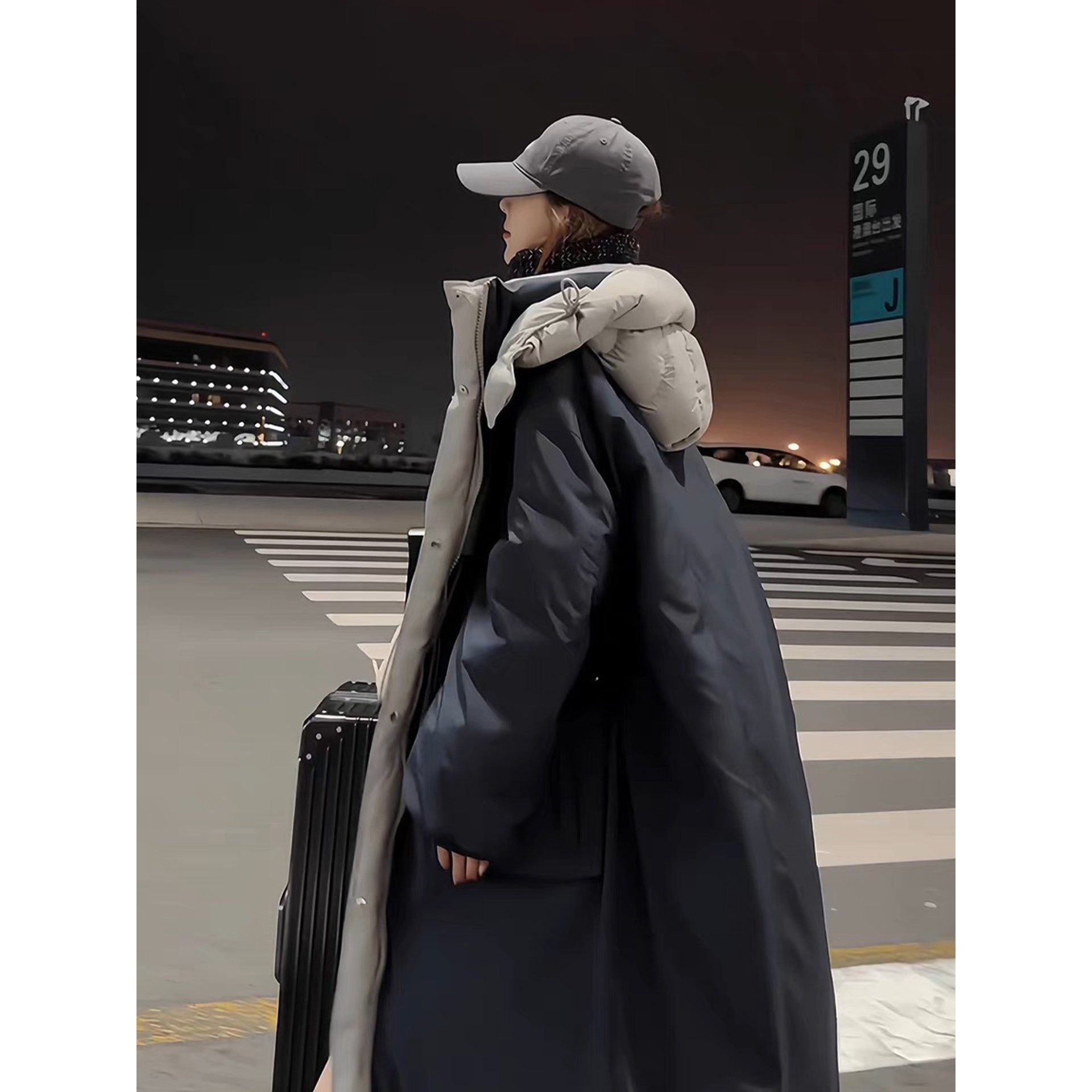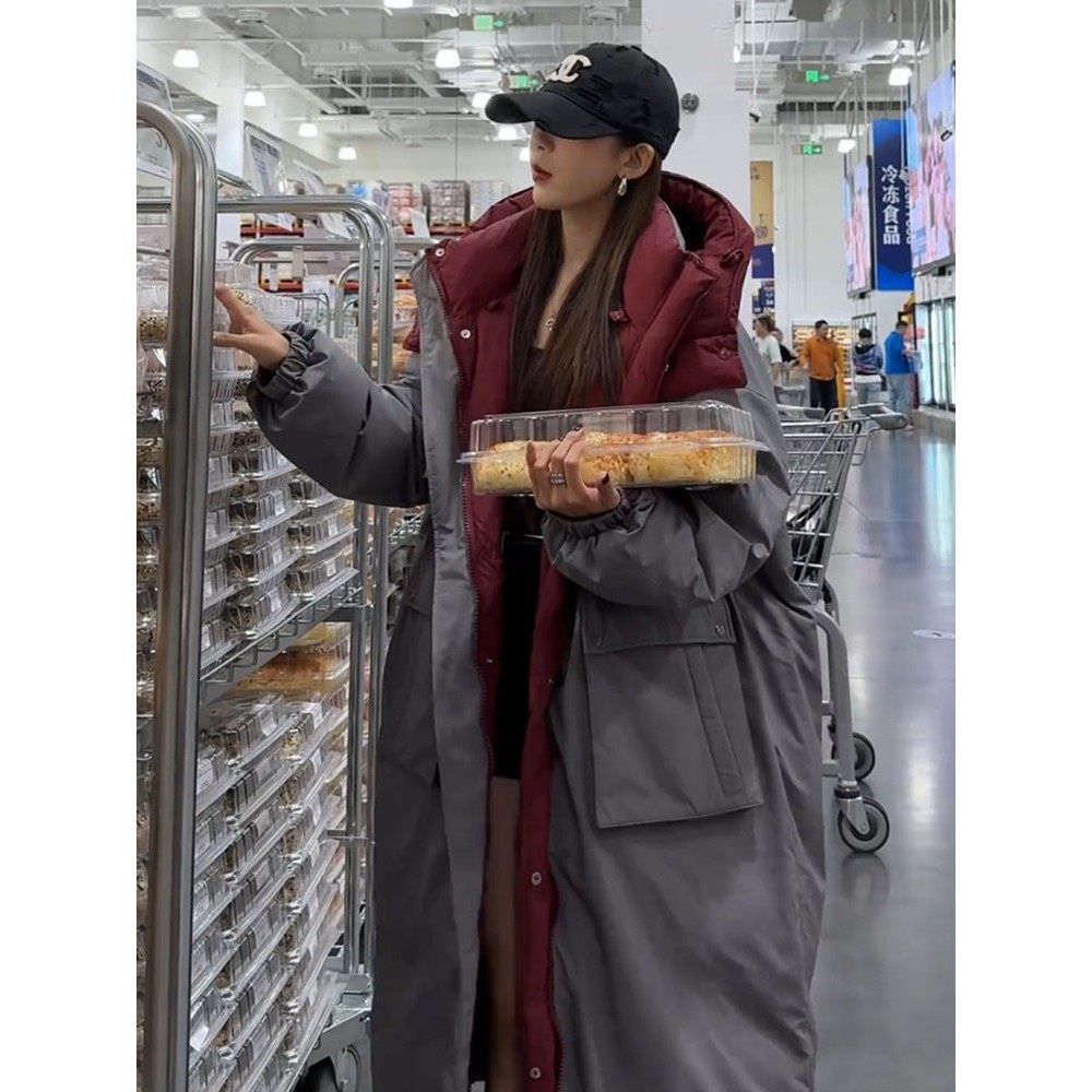 2025冬季新款羽绒服时尚宽松今年流行灰色外套女两面穿工装风长款