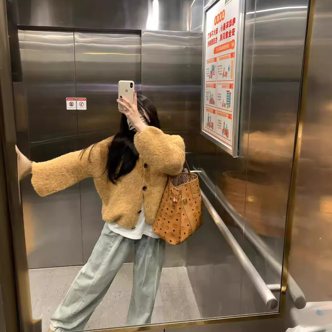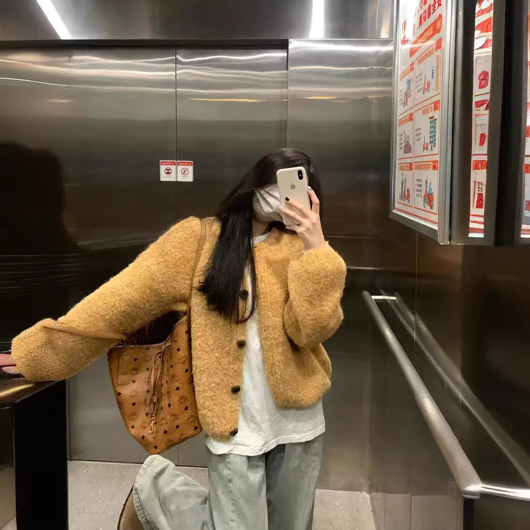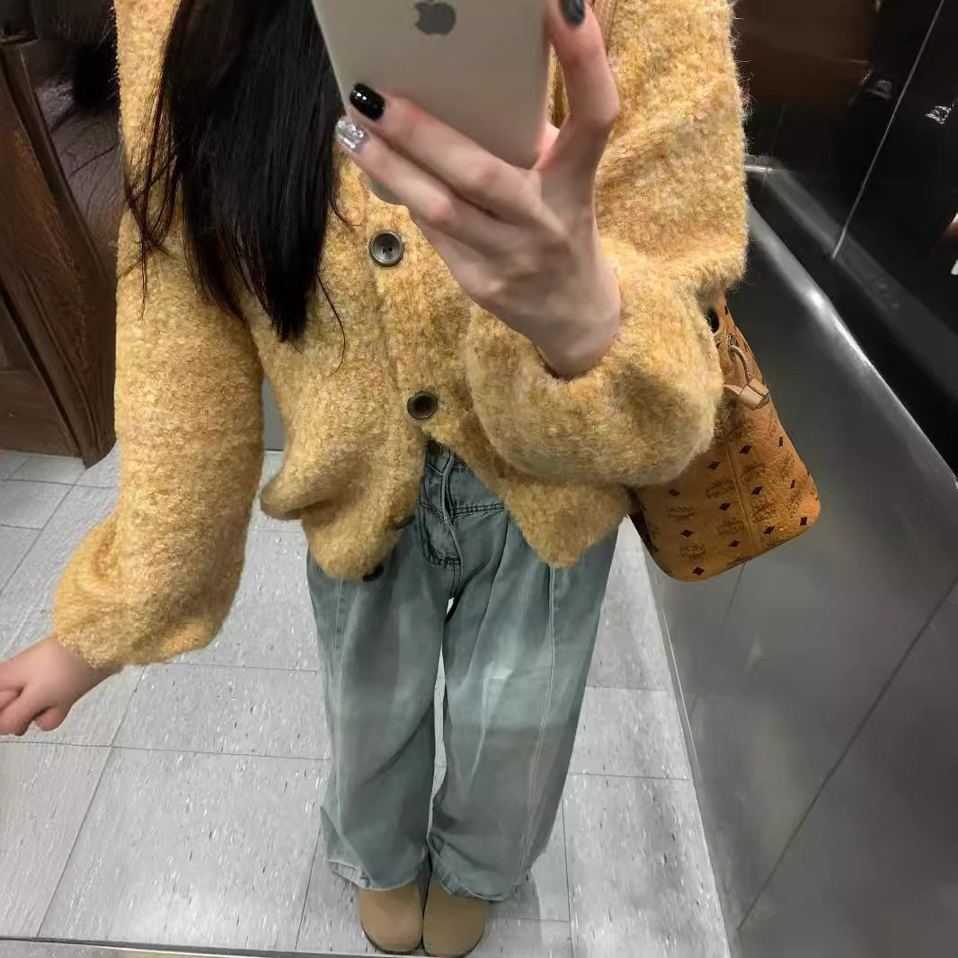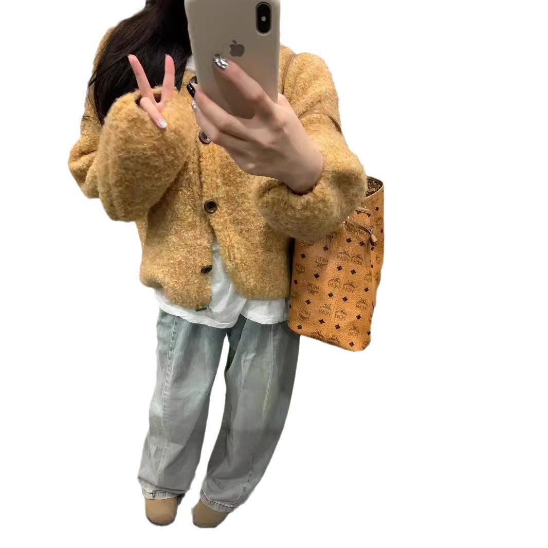 小众显瘦秋冬宽松慵懒风圆领针织短款毛衣开衫上衣外套潮女公主风