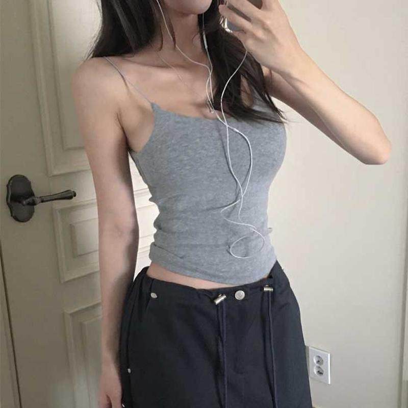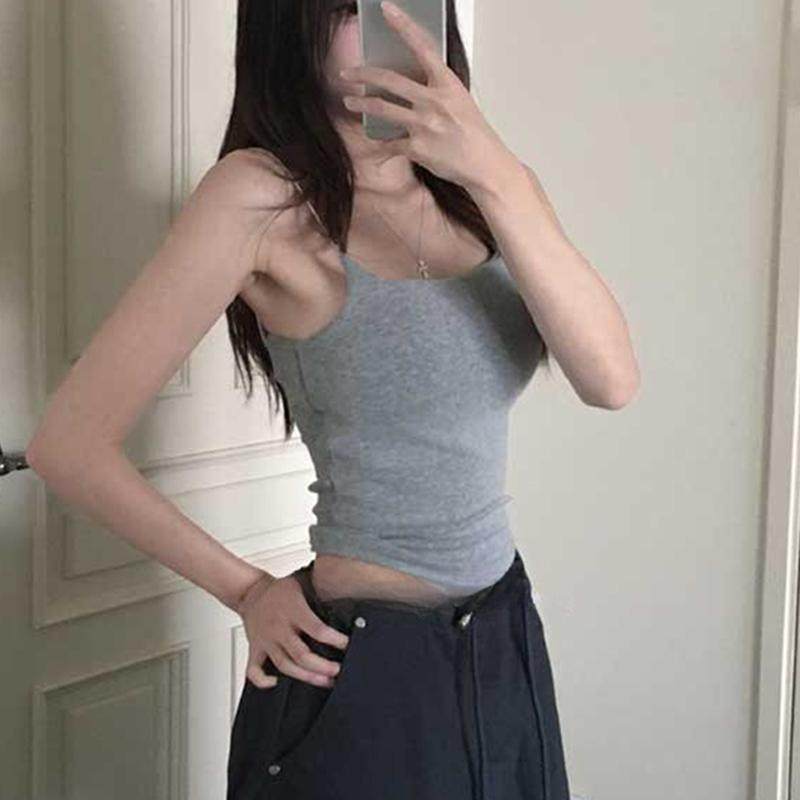 韩国东大门新款日常百搭显身材~性感女人味带胸垫吊带背心女上衣