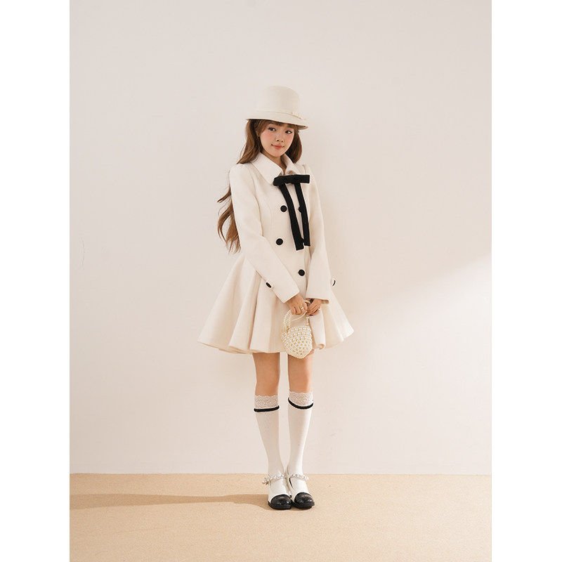 白调魔女 赫本千金收腰冬季高级法式富家新款毛呢大衣气质外套