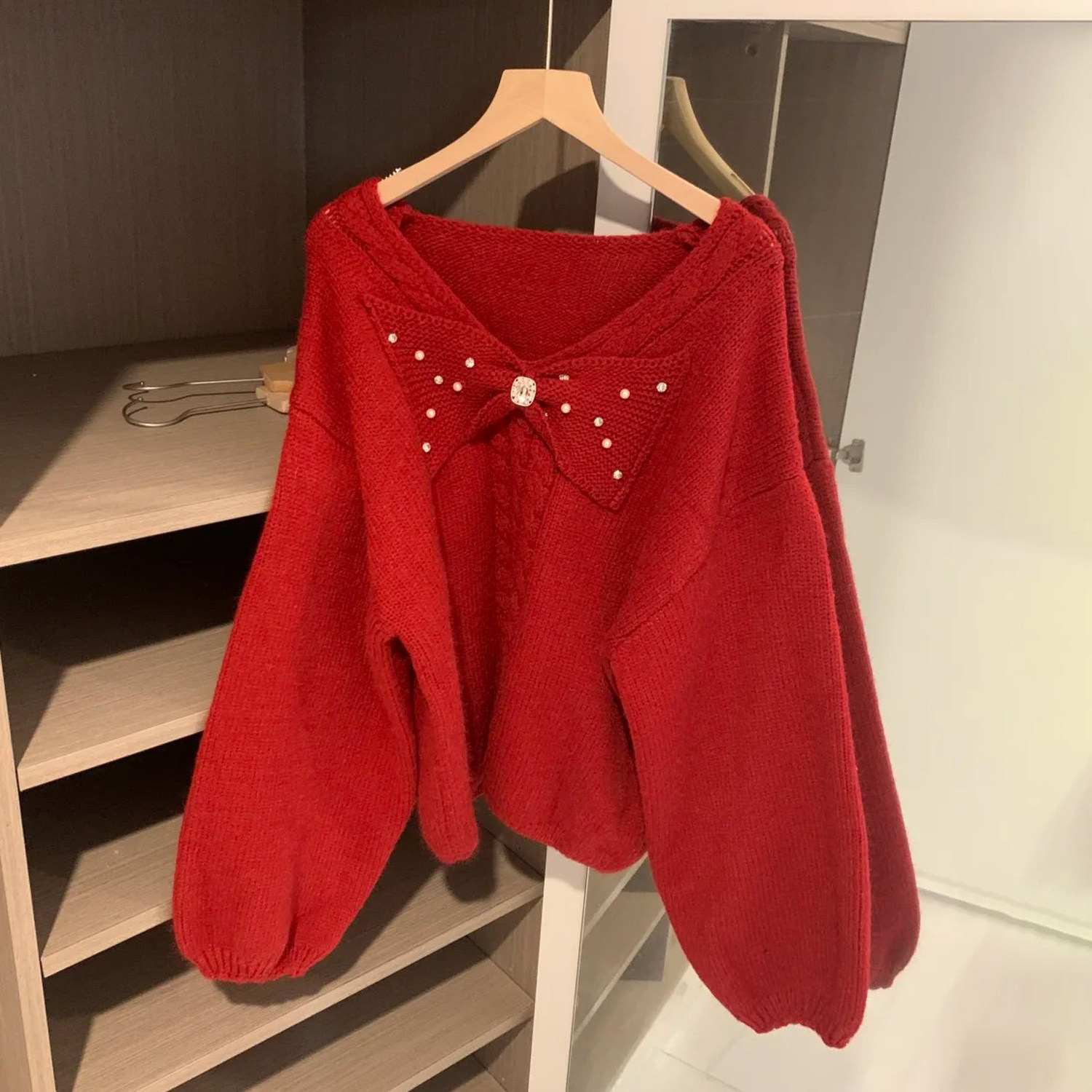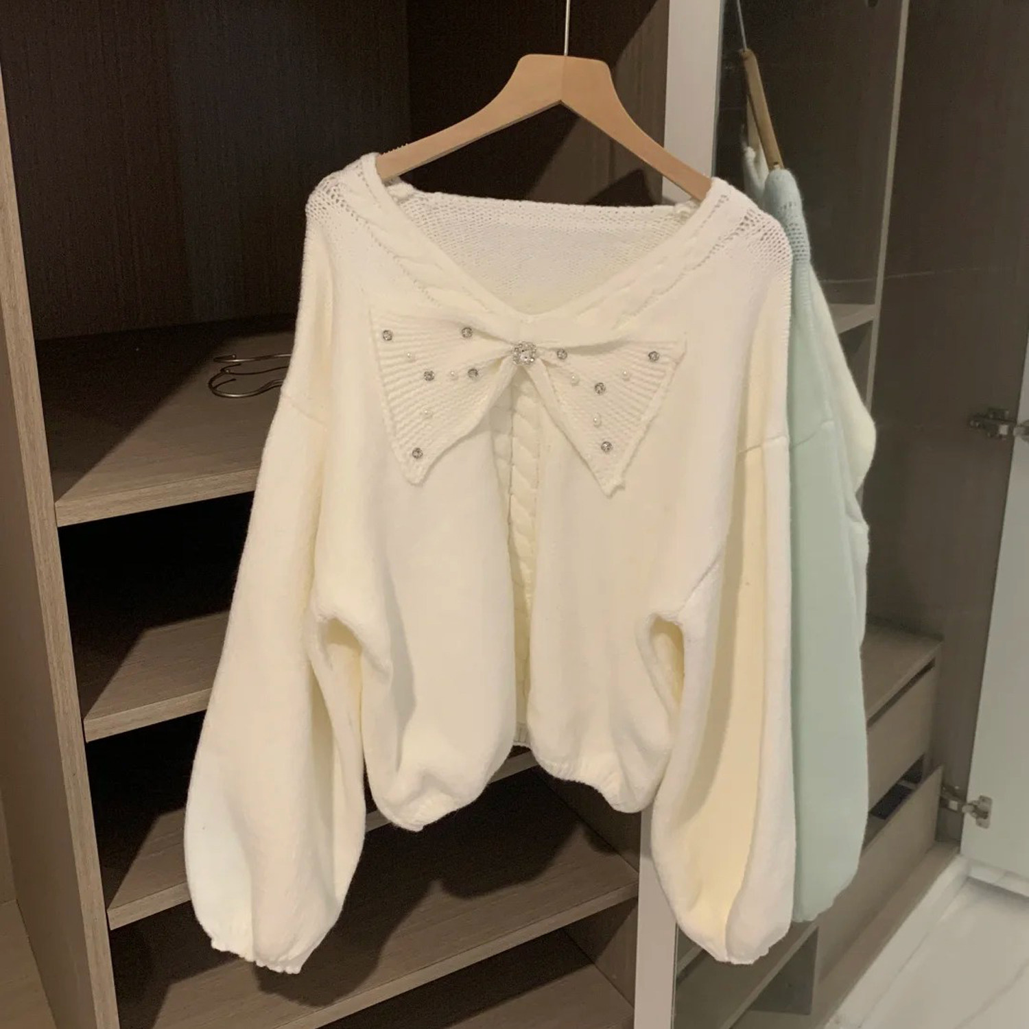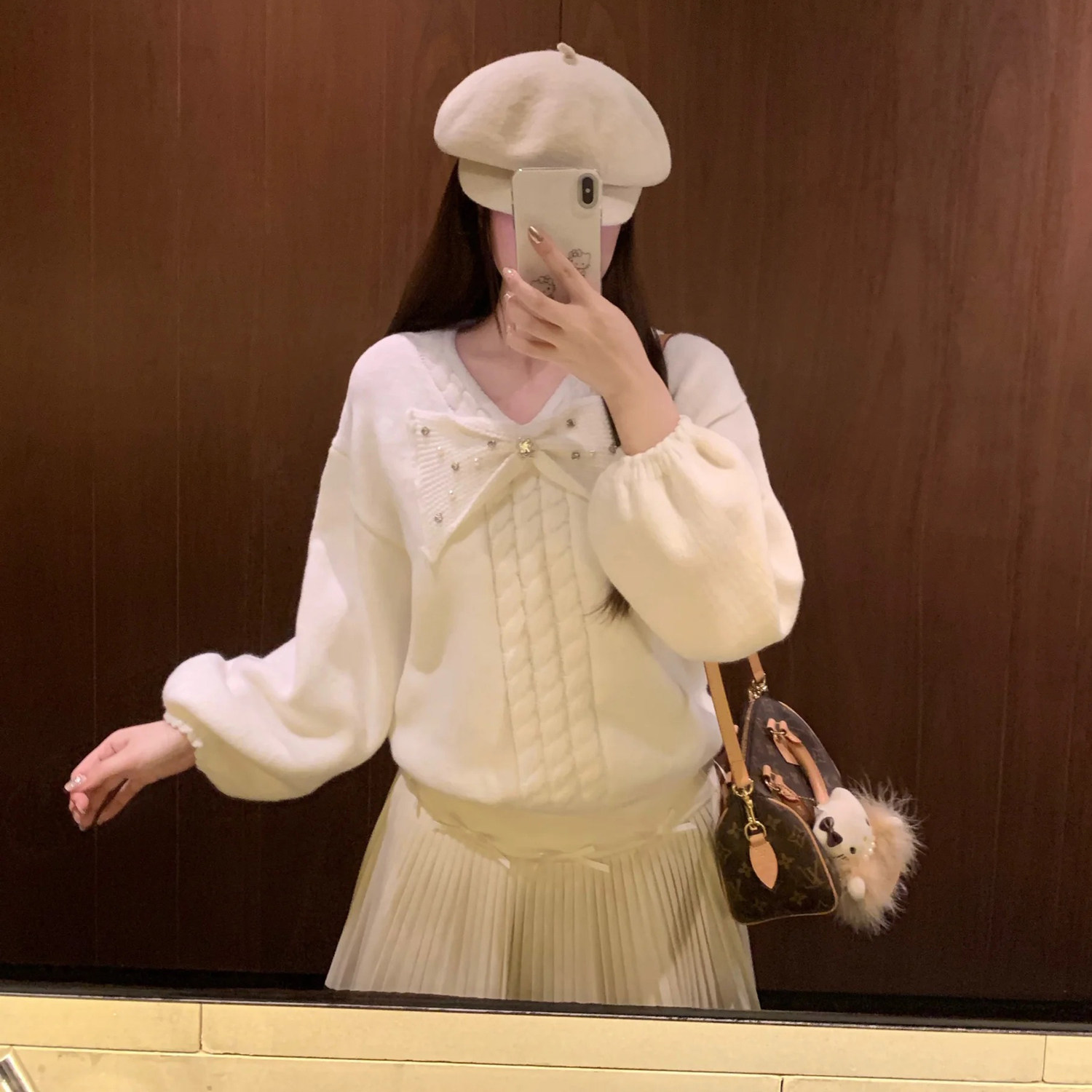 法式气质高级感春季新款温柔慵懒风蝴蝶结设计感软糯针织毛衣女潮