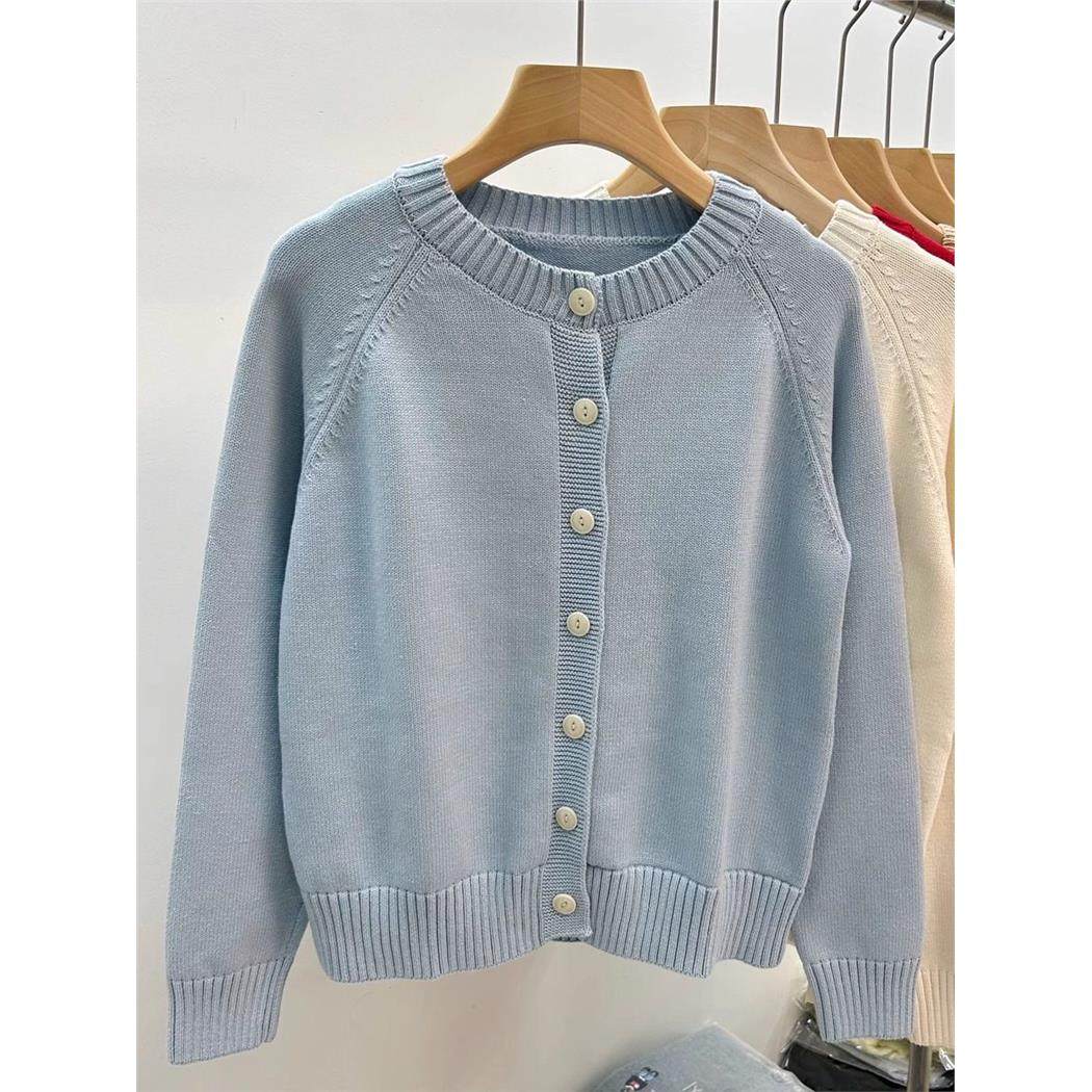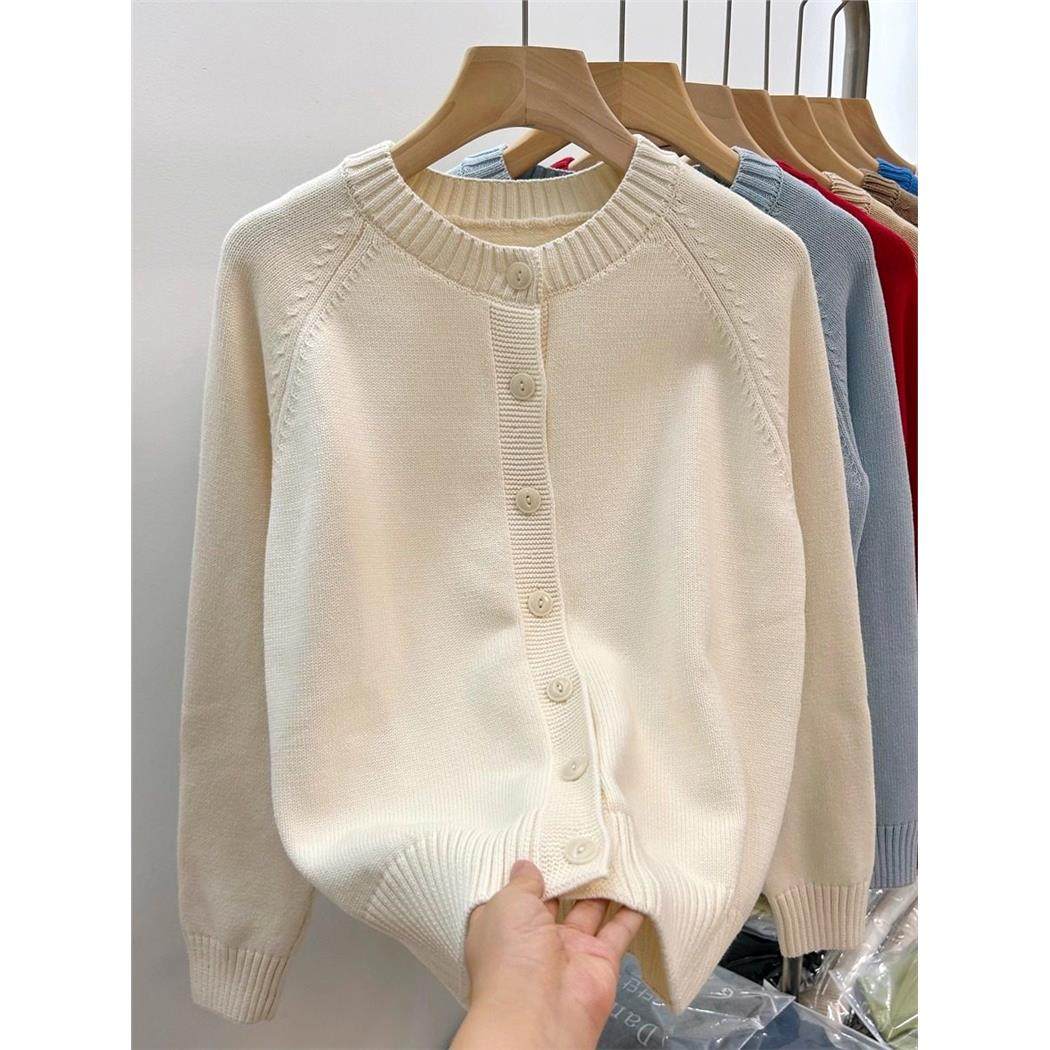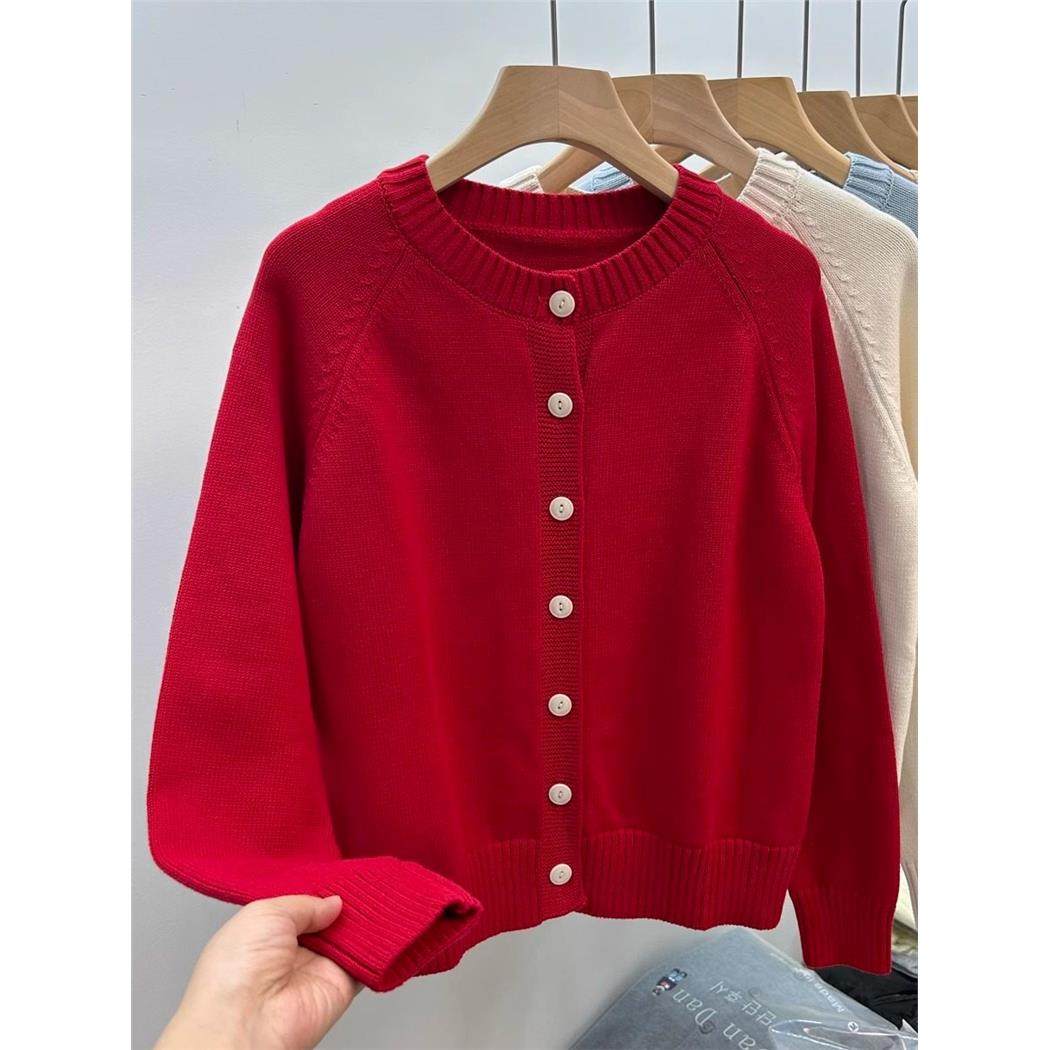 100%纯棉针织衫女士开衫外搭圆领红色洋气全棉线上衣秋冬厚款外套