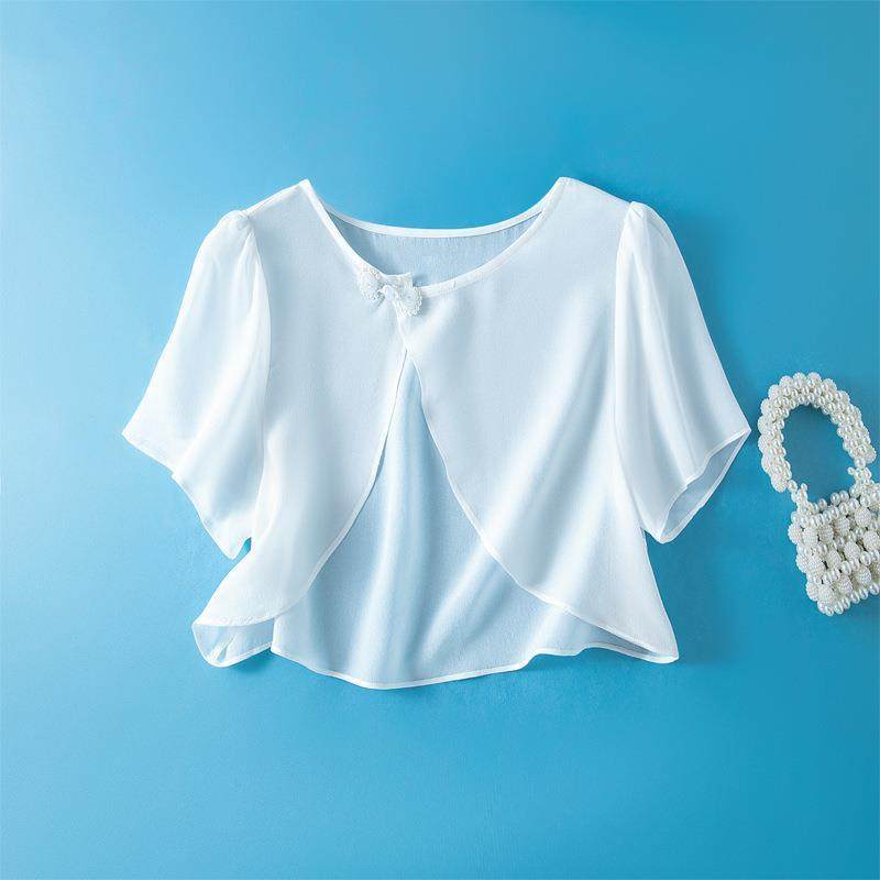 外搭小披肩罩衫夏季薄款圆领百搭显瘦配吊带裙短袖开衫上衣女