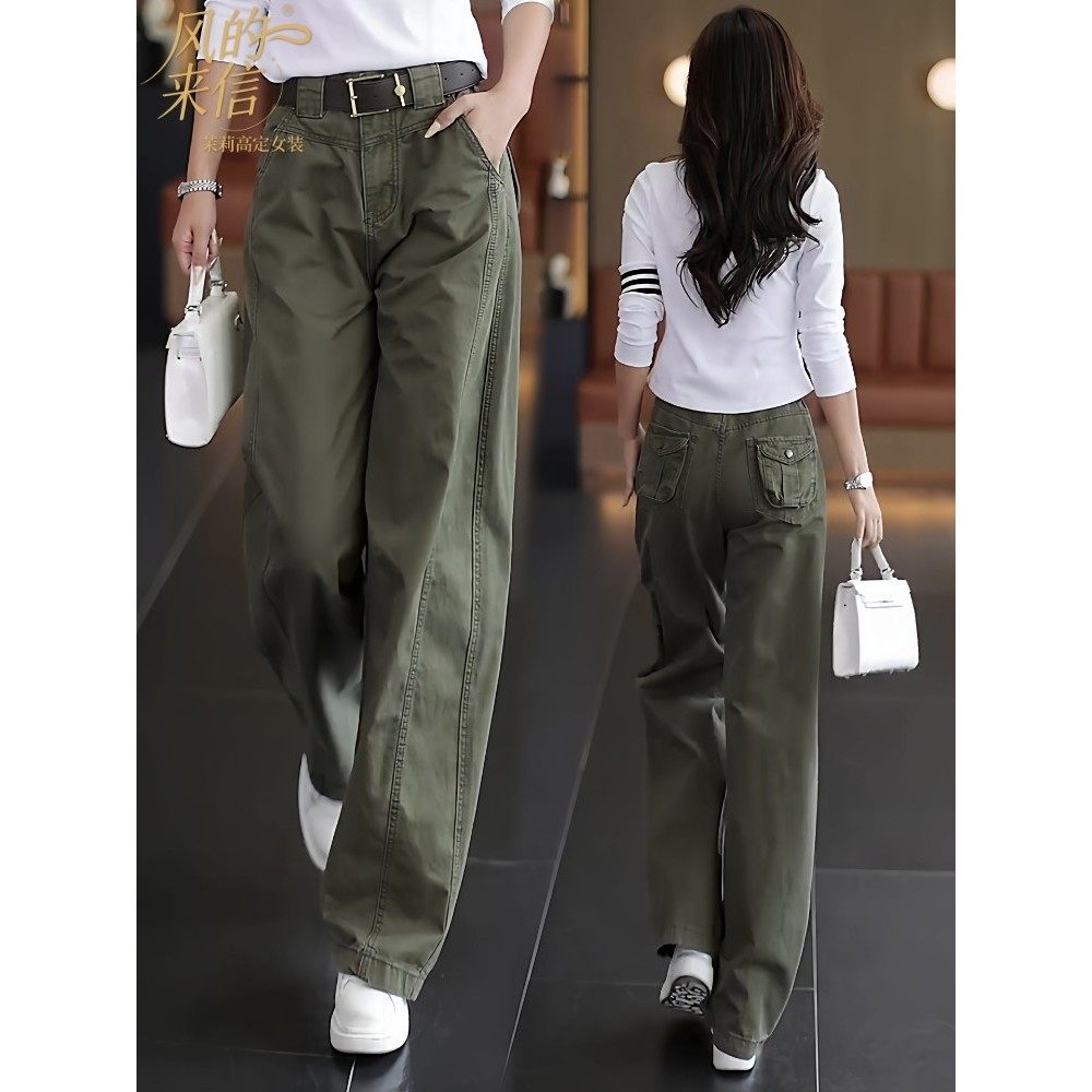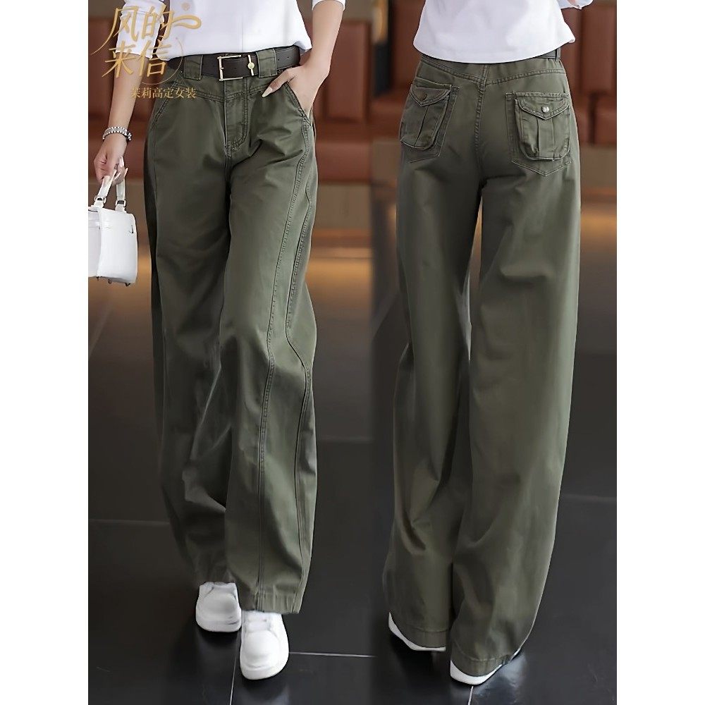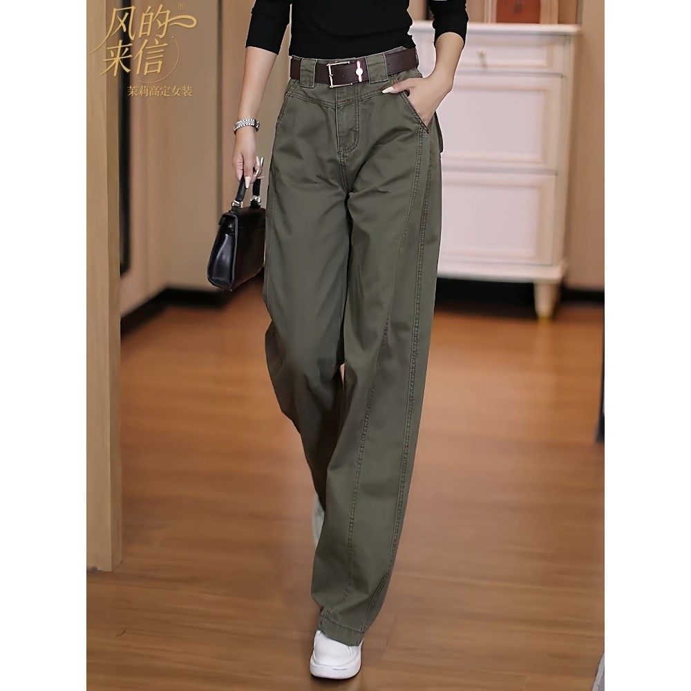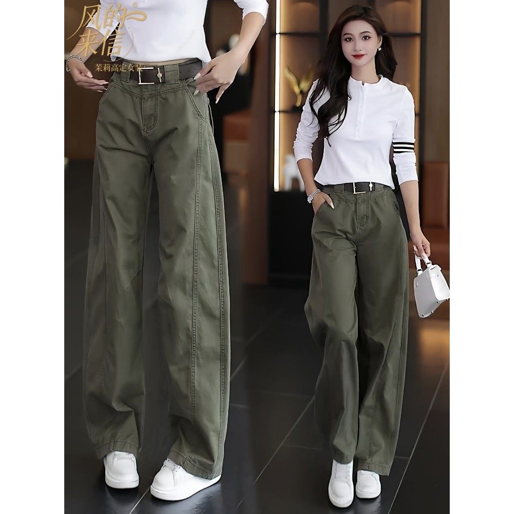 茉莉高定工装牛仔裤女2025新款秋季覆古高腰显瘦休闲裤阔腿弯刀裤
