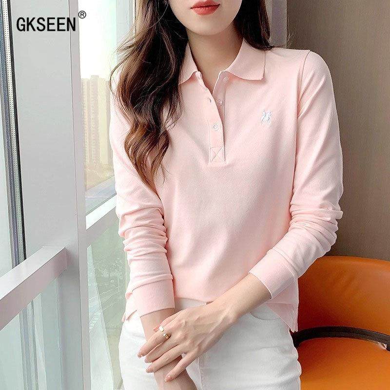 首页> 女装> 长袖T恤女2025秋季新款时尚休闲百搭纯棉正肩显瘦翻领polo衫上衣