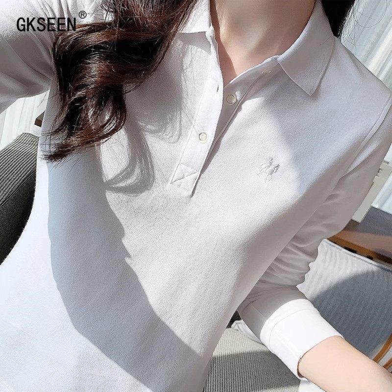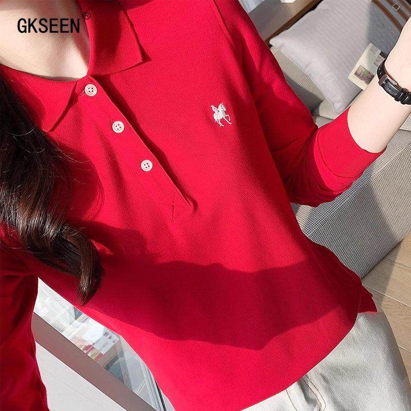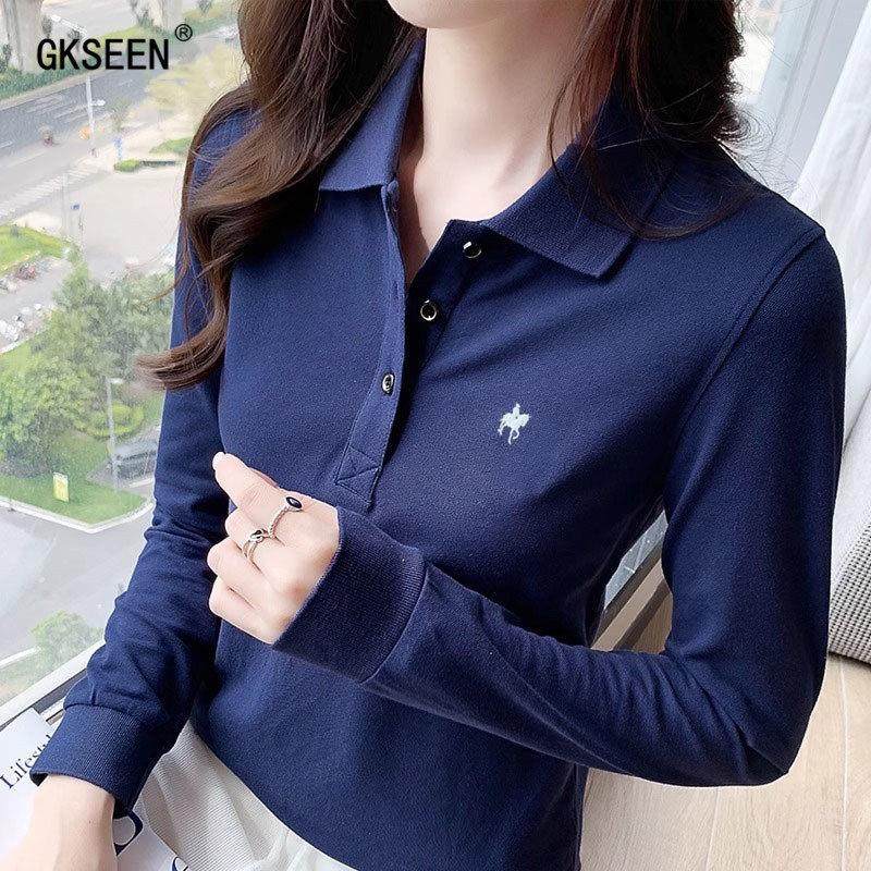 长袖T恤女2025秋季新款时尚休闲百搭纯棉正肩显瘦翻领polo衫上衣